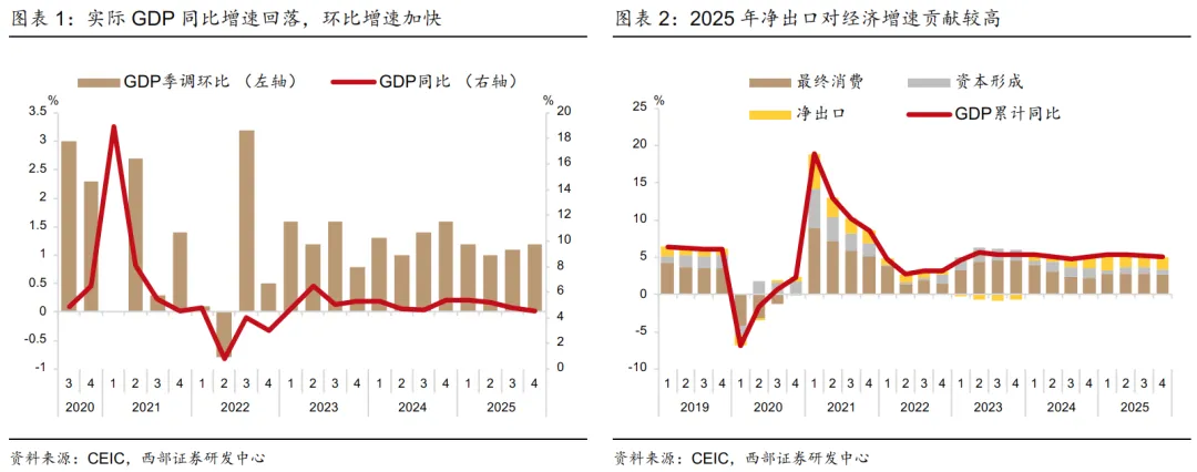 本文摘自西部证券研究发展中心2026年1月19发布的证券研究报告《外需强、消费稳、投资跌、地产降 ——2025年经济数据点评》