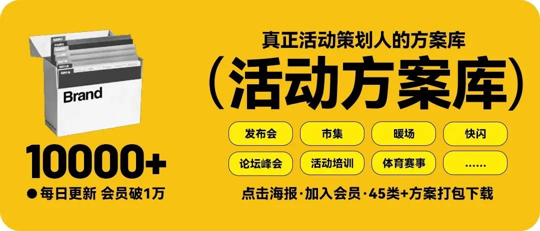 - 活动方案库:(发布会、论坛峰会、答谢晚宴、嘉年华、快闪、路演、促销、暖场、文化节、音乐节、开业、周年庆典、年会、校园、沙龙、市集、啤酒节……6000+方案!42个活动类型)