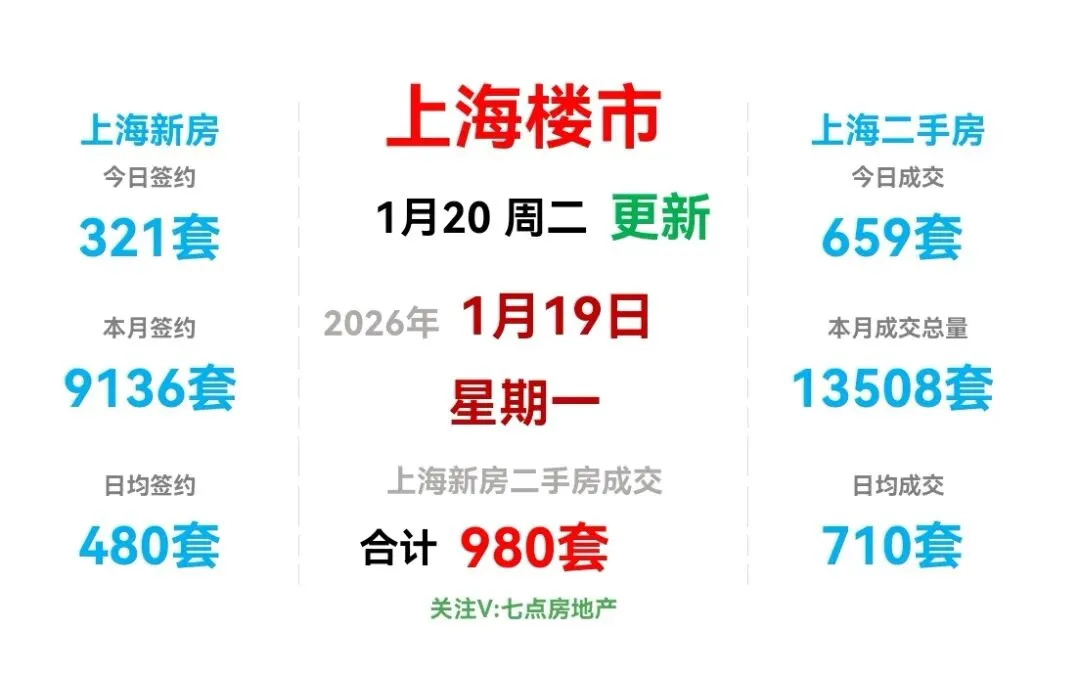 昨日(1月19日,周一),上海新房和上海二手房成交量合计980套。