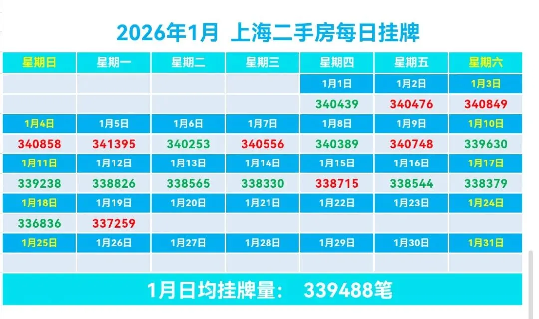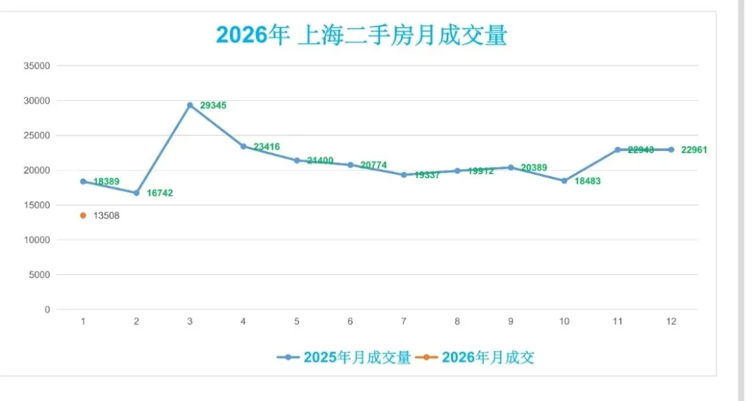 ♻️截止2026年1月19日,2025年上海二手房成交量合计254091套,月均21174套。