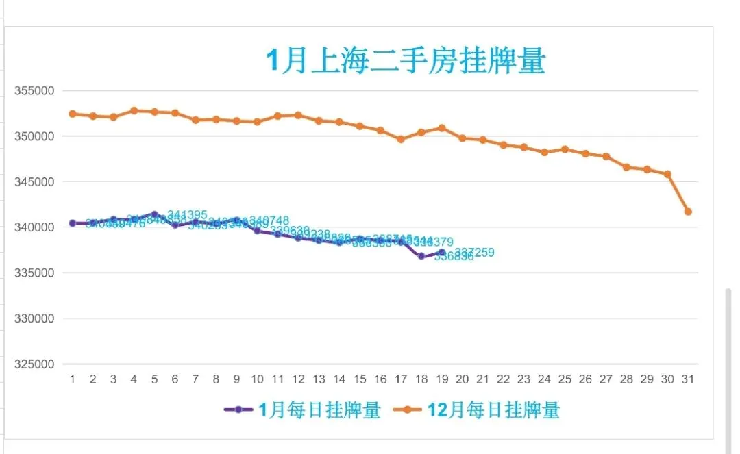 🏠昨日(1月19日,周一)挂牌337259笔,较前一日增加423笔,日均挂牌339488笔,约33.95万笔,挂牌与实际成交比478:1,去化周期约15.9个月。