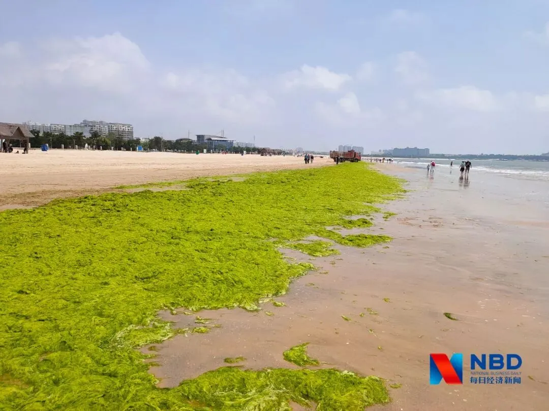 记者即将离开银滩的时候,铲车和运输车正在清理沙滩上的浒苔,因为每年银滩最热闹的旅游季即将到来。