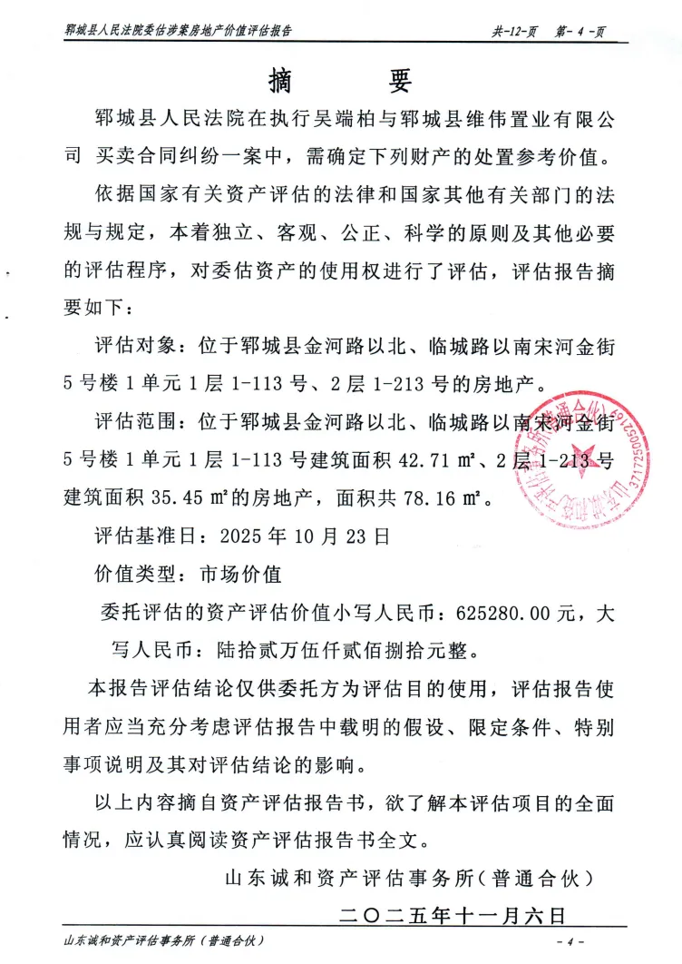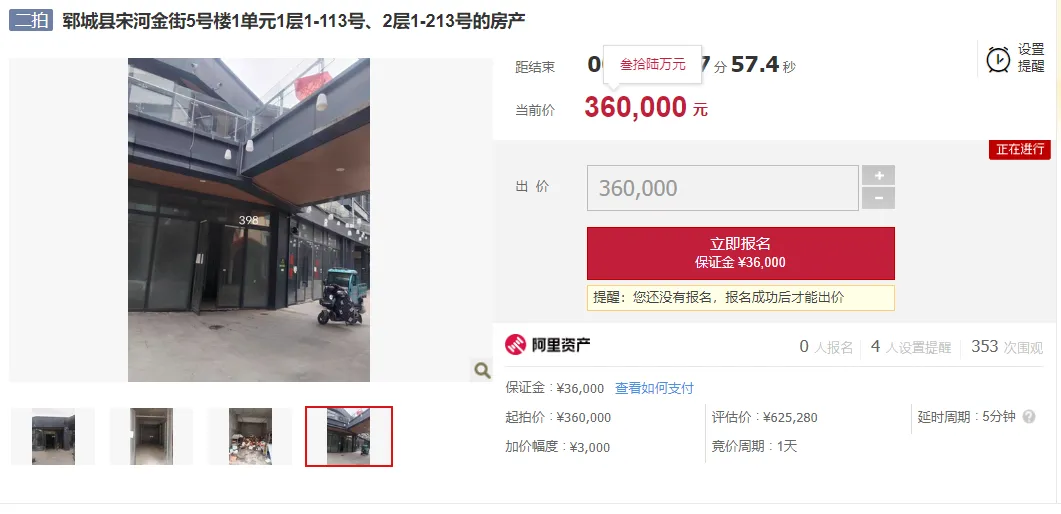 >郓城宋河金街一房产36万元,78.16平!即将拍卖