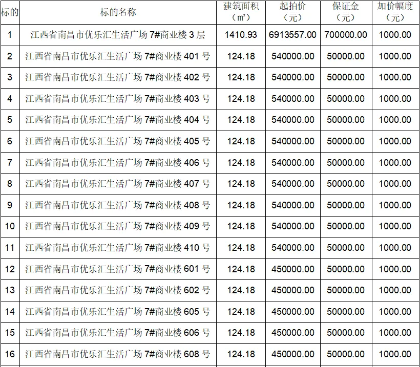 一、拍卖标的:优乐汇生活广场7#商业楼 ,具体如下: