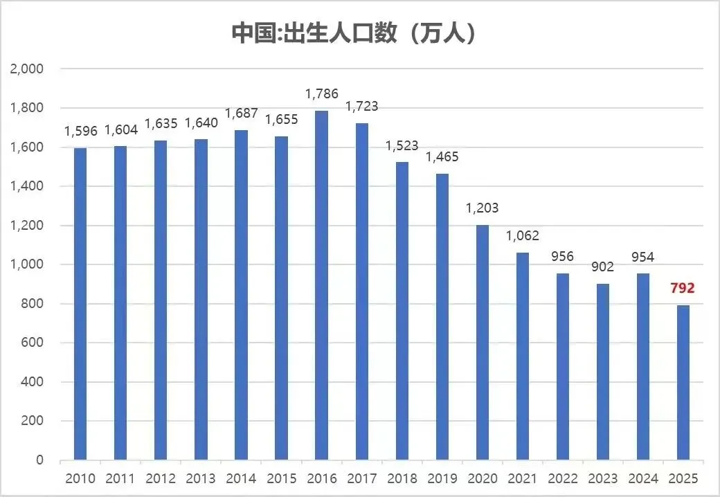 昨天统计局公布了2025年出生人口数据792万,降幅很大