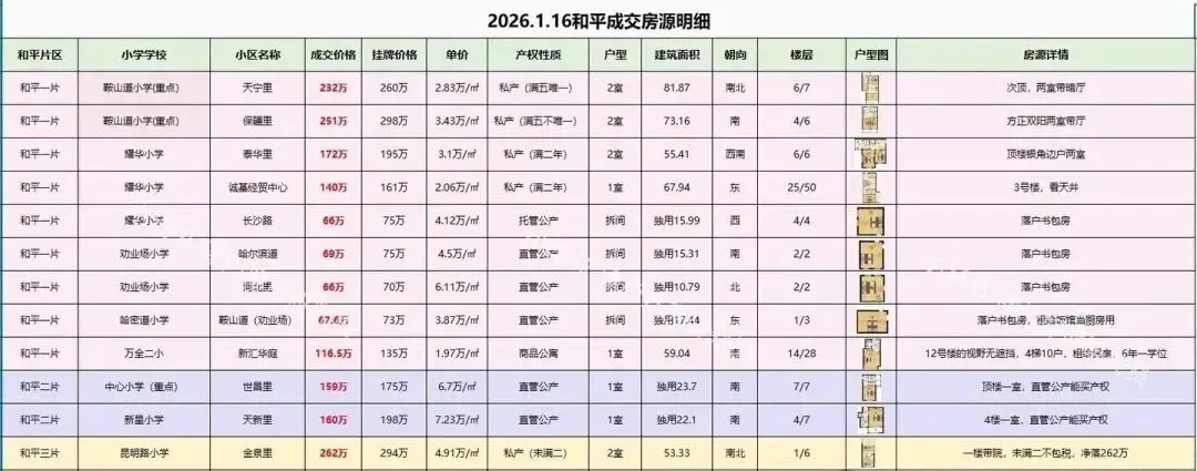 我是大忠,天津房产10年从业者,俩娃从河北来津上学,落户,转学,房产全流程帮助外地家长规划,有想和我私聊或者想进群交流的家长都可加我:最近天津二手房的成交量有所回升,目前和平区的成交价格也有所上涨,已经过了最低谷的时期了。和平区目前的私产价格门槛是150w左右,公产的价格,目前成交价已经开始向80多万回升,之前五六十万的房子,不太好找了。而一月份刚刚过去一半,和平已成交二手房190套,正好与十二月全月的190套持平。