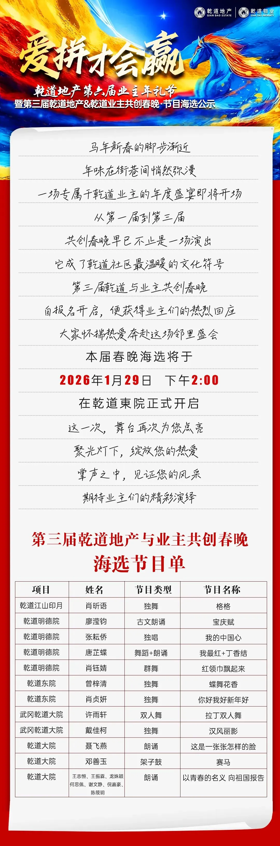 第三届乾道地产&乾道业主共创春晚·海选即将开启