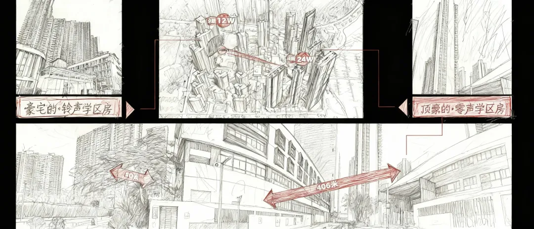 更重要的是,销售反馈说,客户来了之后,第一句话就是:"我看了你们那个'零声学区房'的视频,确实有道理。135米这个距离,既有学区又不吵,这个我认。"难怪,对手会不爽。
