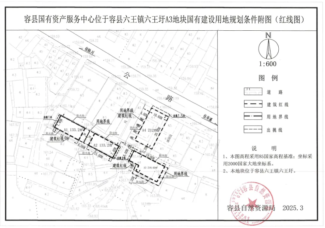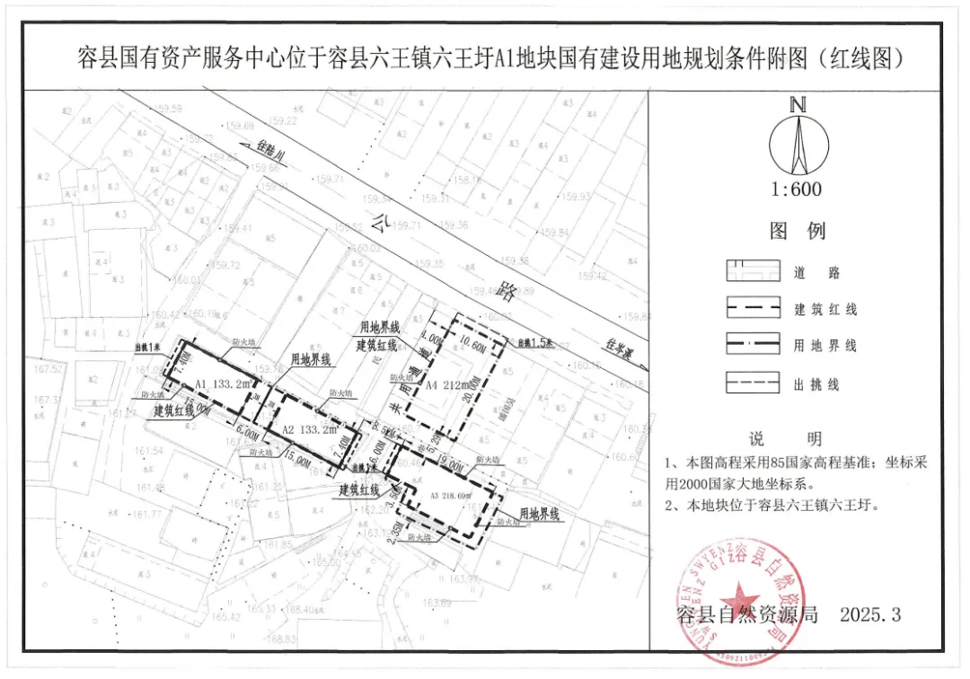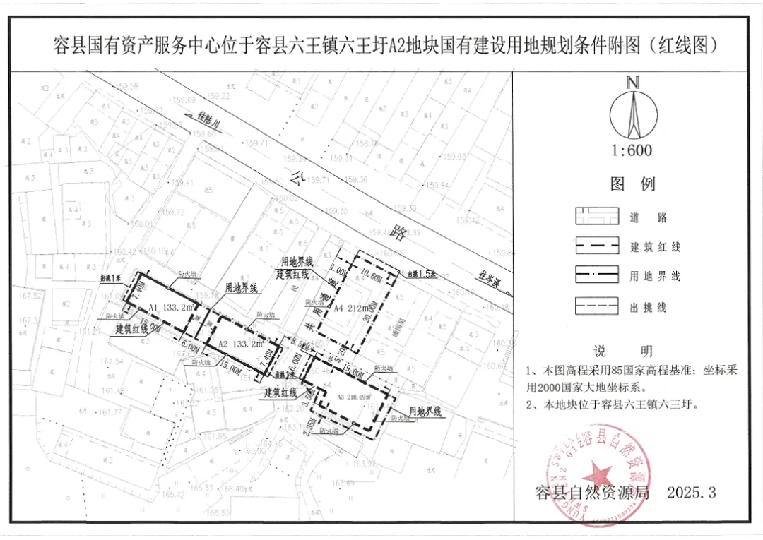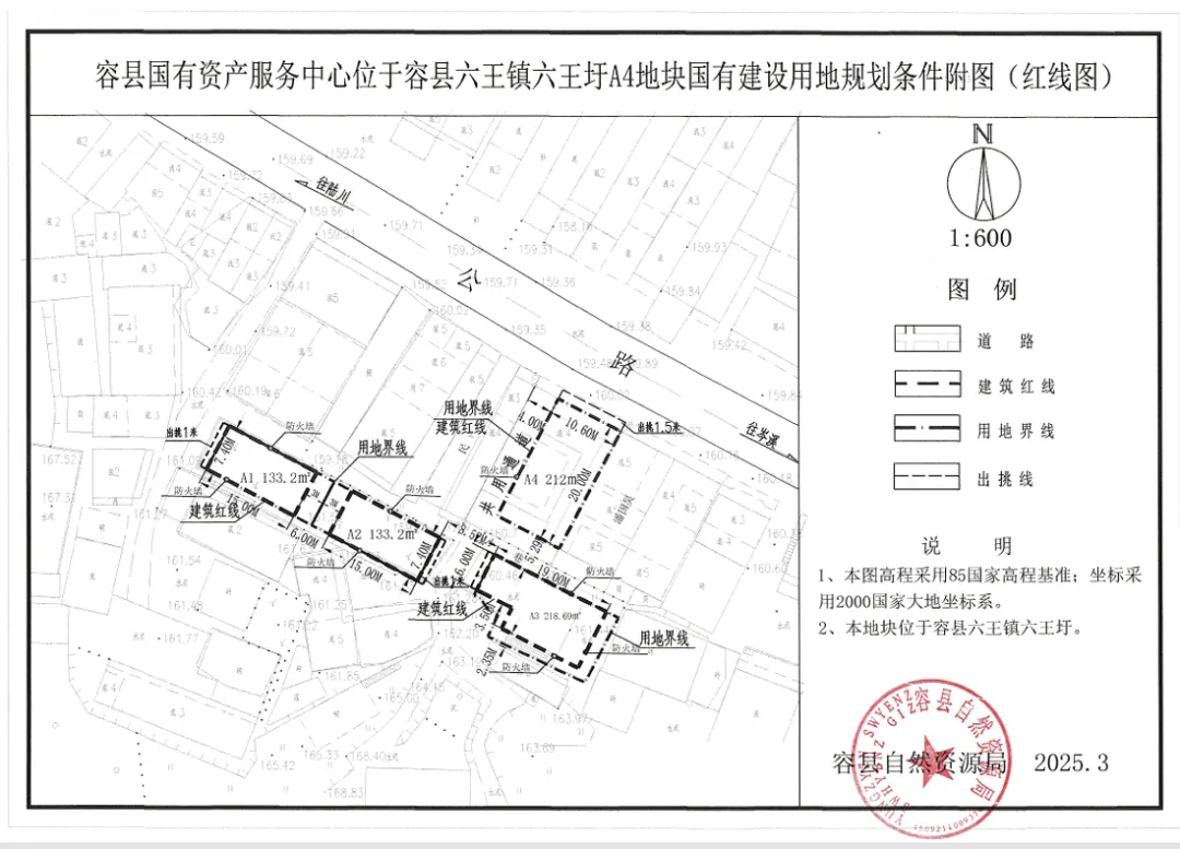 1、容县六王镇六王圩(原国税)1#地块拆分后A1 地块,占地面积约133.2m2。规划条件详见容自然资规字[2025]14号。
