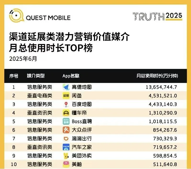 高德端口的创新,始于对业务场景的本质洞察。作为9.4亿月活用户的首选导航工具,高德覆盖了从小区搜索、周边配套评估到带看导航的全决策链条。中介行业流传着在看房的地图工具中,线下看房客户80%以上使用地图导航,高德作为实地看房阶段的核心流量终端工具,通过小区搜索-周边配套分析-导航通勤评估三维场景矩阵,构建了天然决策推荐机制。图片来源:Quest Mobile