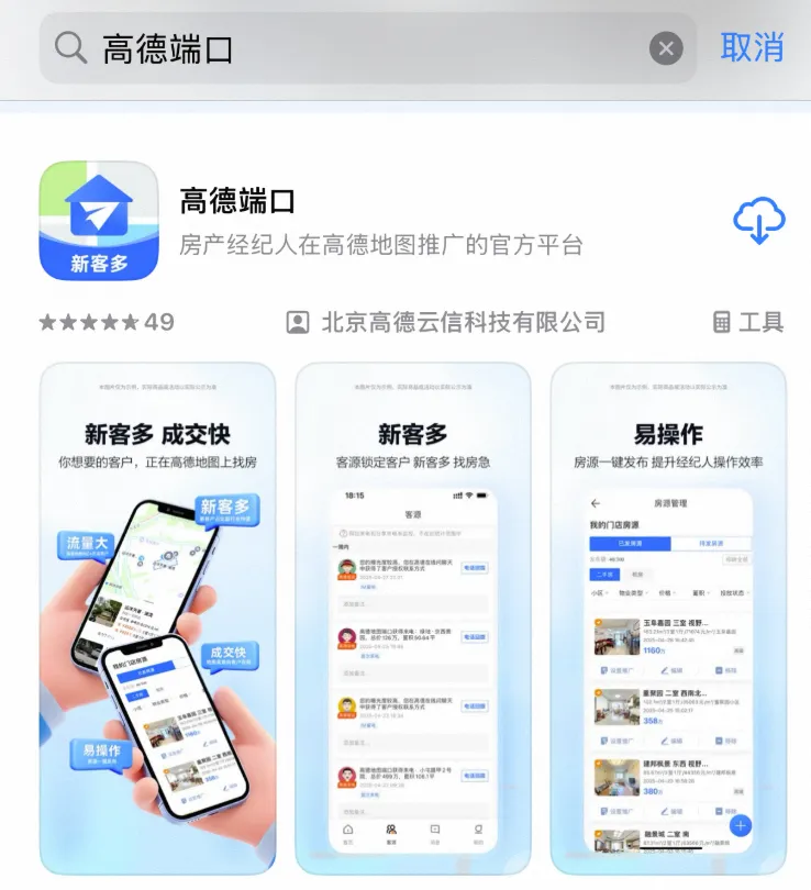 高德房产相关负责人透露:高德端口深度融合了LBS大数据与AI算法能力,通过地图找房场景覆盖、用户决策链路渗透、看房场景精准触达,三大矩阵驱动房产经纪人在二手房、租房、商业地产的全业态作业。
