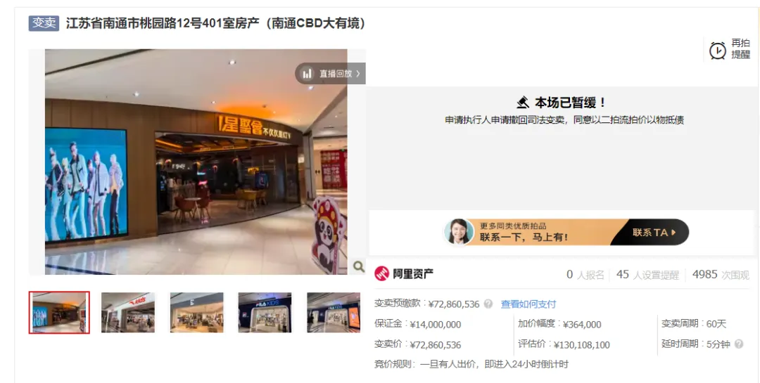 据悉,这次变动的仅是南通CBD大有境的部分资产,4F主要经营业态为儿童鞋服、餐饮、娱乐配套。