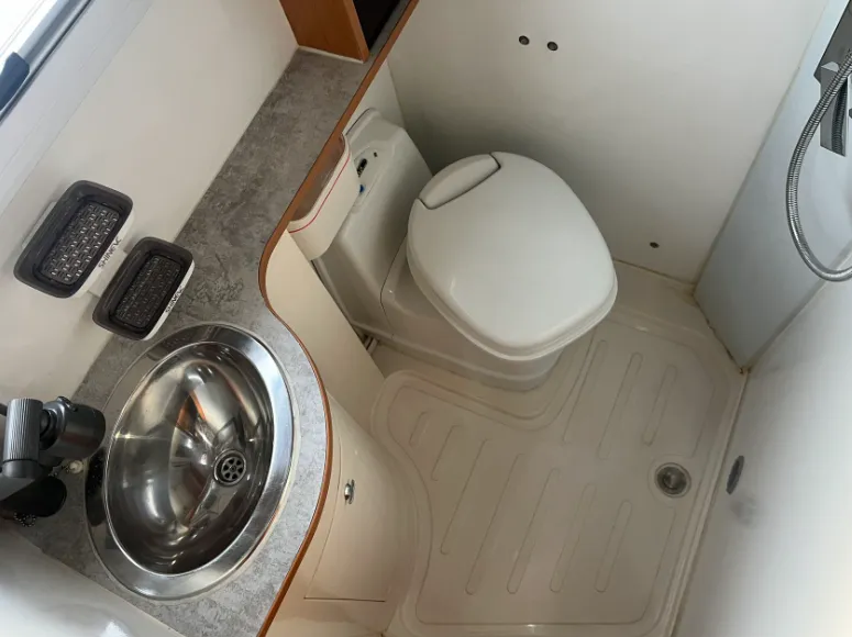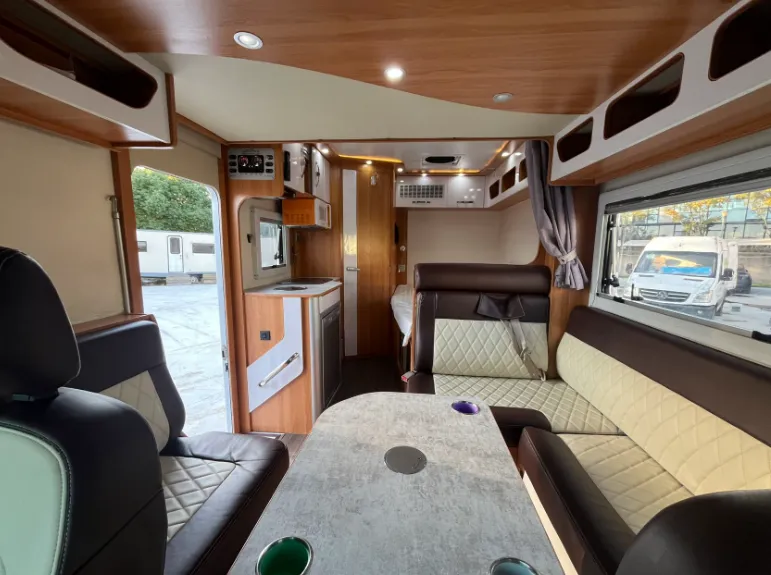 【上装配件】60升多美达冰箱、柴油暖风暖水一体机、房车专用微波炉、房车专用油烟机、电磁炉、客厅电动吊床、小米网络电视、额头大天窗(可打开)、特鲁玛房车底置空调、赛特福德抽拉旋转马桶、菲尔玛遮阳棚、电动换气扇、外置抽拉灶具