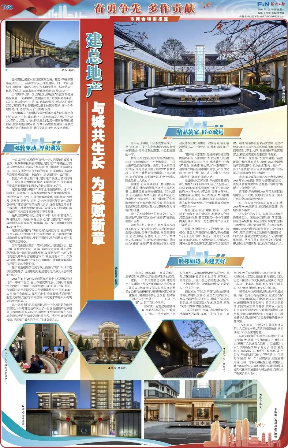 站在2026年的新起点,建总地产的奋进号角已经吹响:“作为市属国企,我们将始终坚持‘人民城市人民建,人民城市为人民’,以更高标准践行‘好房子’理念,稳扎稳打,厚积薄发,以‘保价力’稳预期、以‘产品力’塑价值、以‘交付力’守承诺、以‘生活力’织温情,用一个个品质新居,回应百姓期待,让每一寸我们耕耘的土地,都生长出城市的温度与未来的希望,为福州建设现代化国际城市注入强劲动能。”建总地产相关负责人表示。