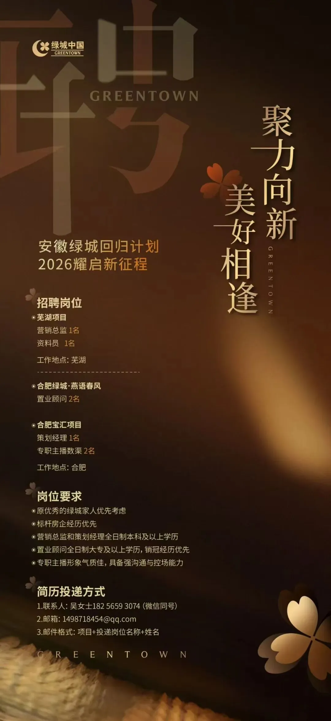 >【地产招聘】——绿城中国——营销总监/策划经理(合肥/芜湖)