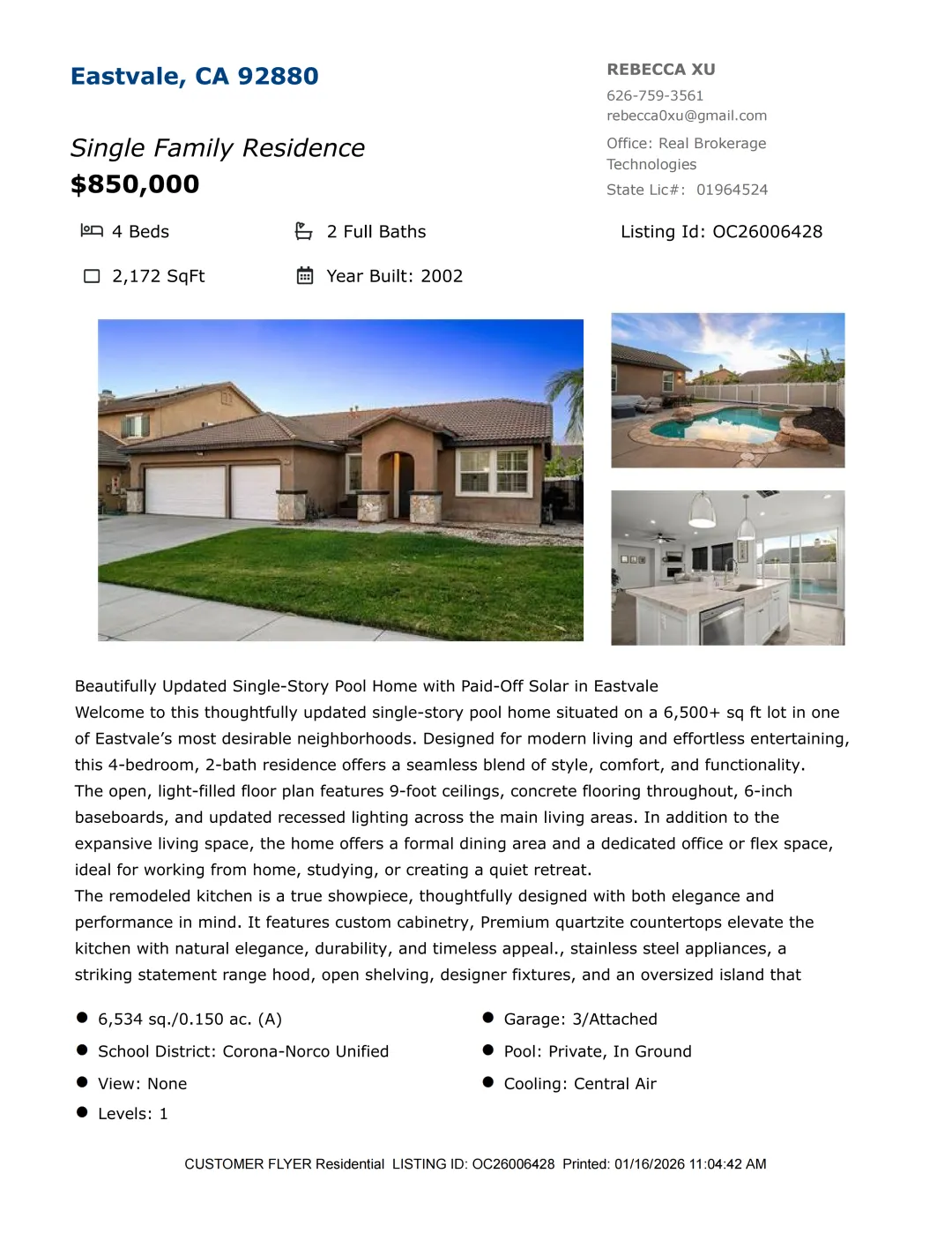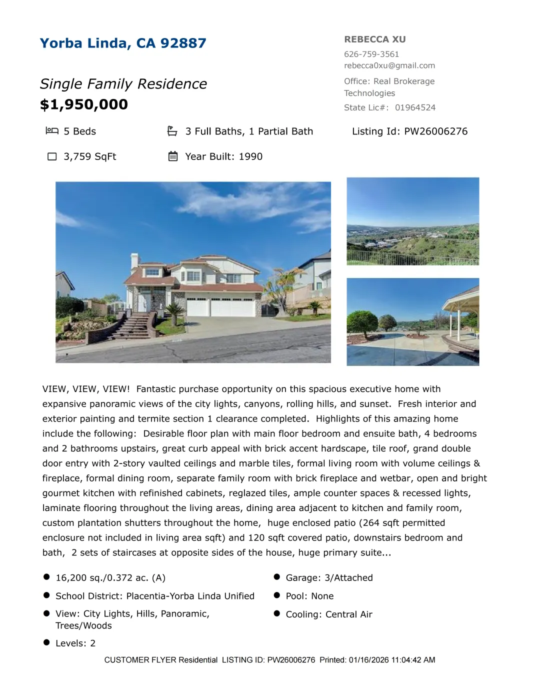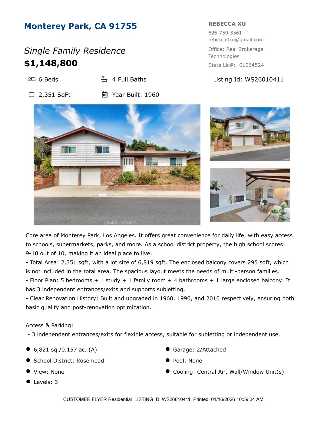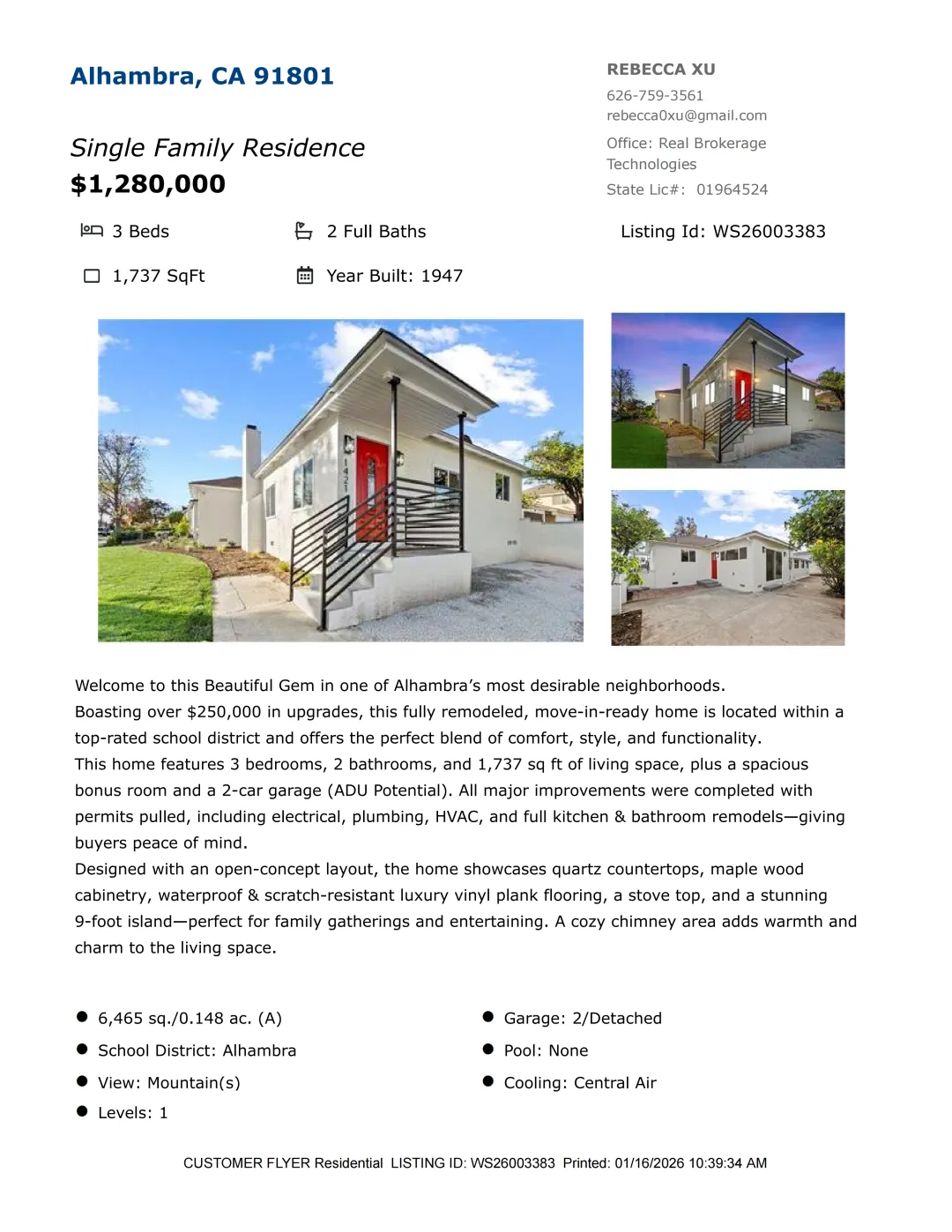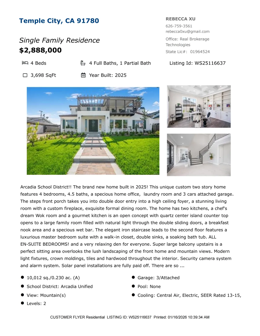 【Rebecca徐】最新房源!加州千万地产经纪人,诚信务实地为您提供最切身需要的房产信息和完善的售后服务!