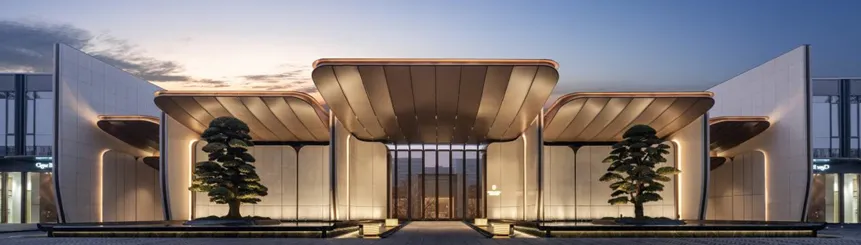 项目联合GAD建筑设计团队、JTL景观设计团队及CCD室内设计团队等国际知名设计机构,融合盛唐文化与现代美学,打造“新长安风”建筑风格。建筑立面以盛唐“叠涩”技艺为灵感,采用天然陶板打造“香槟金-暖灰”渐变效果,融合现代玻璃幕墙与铝板材质,既体现汉唐风骨,又具有高奢质感。