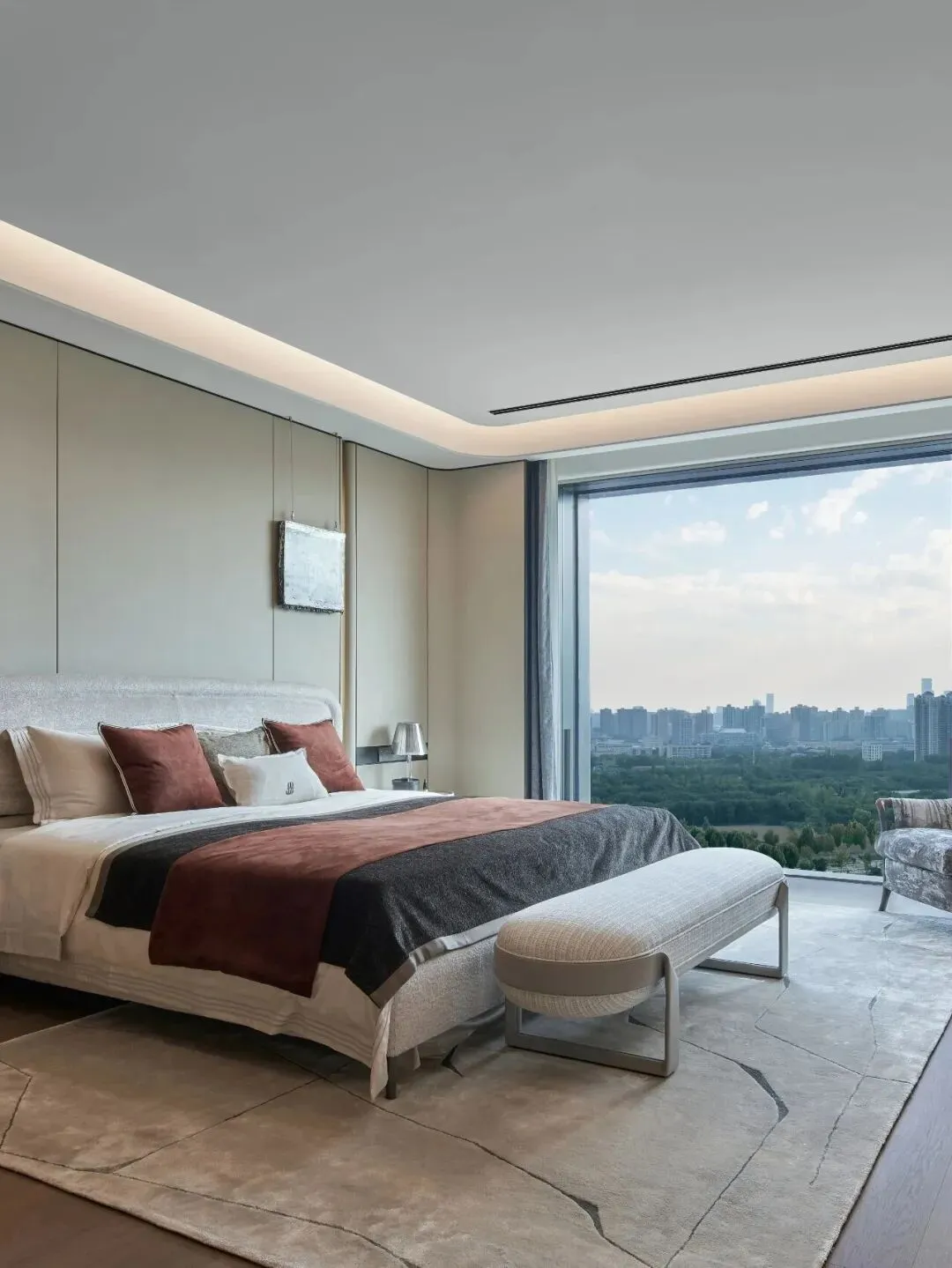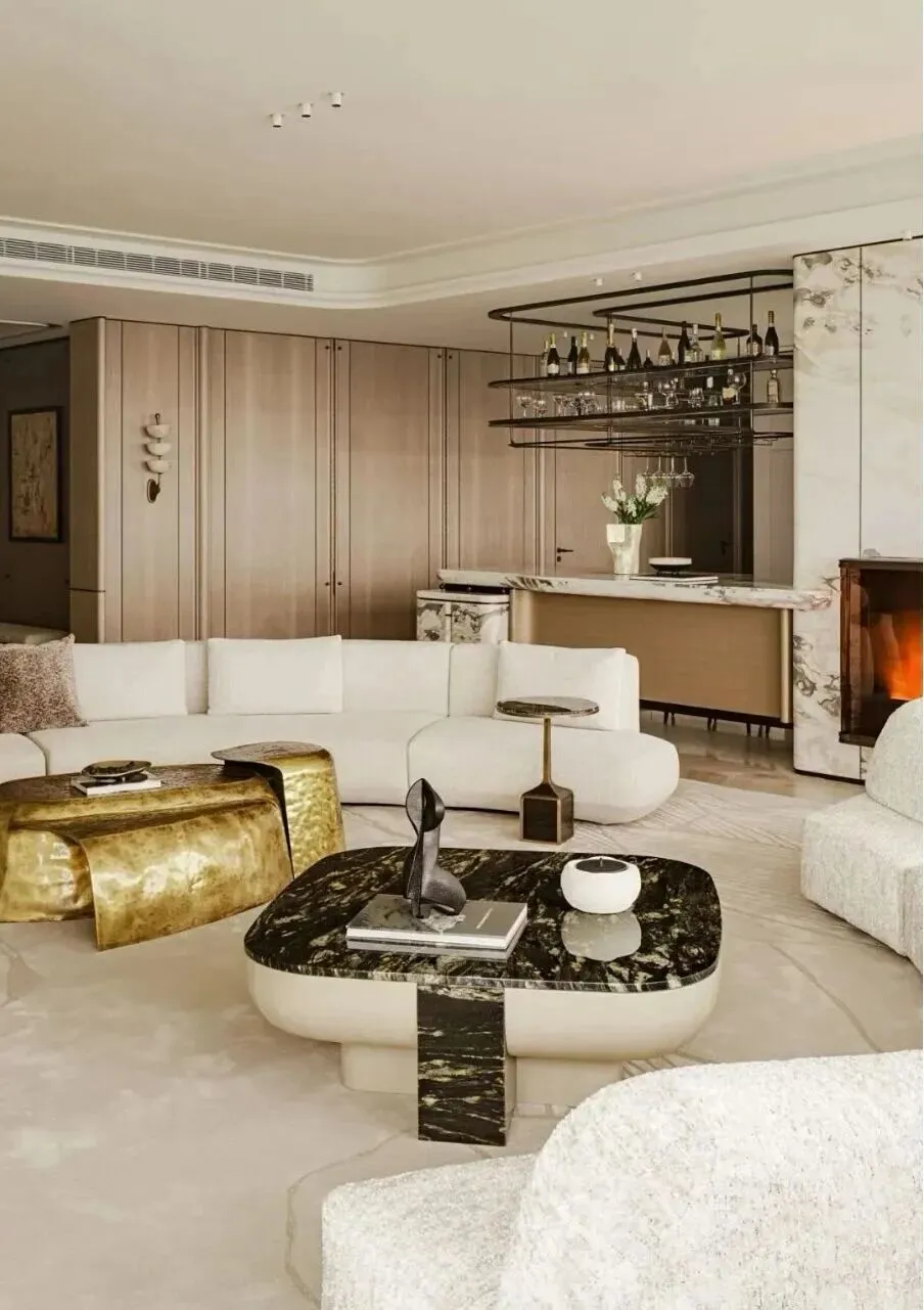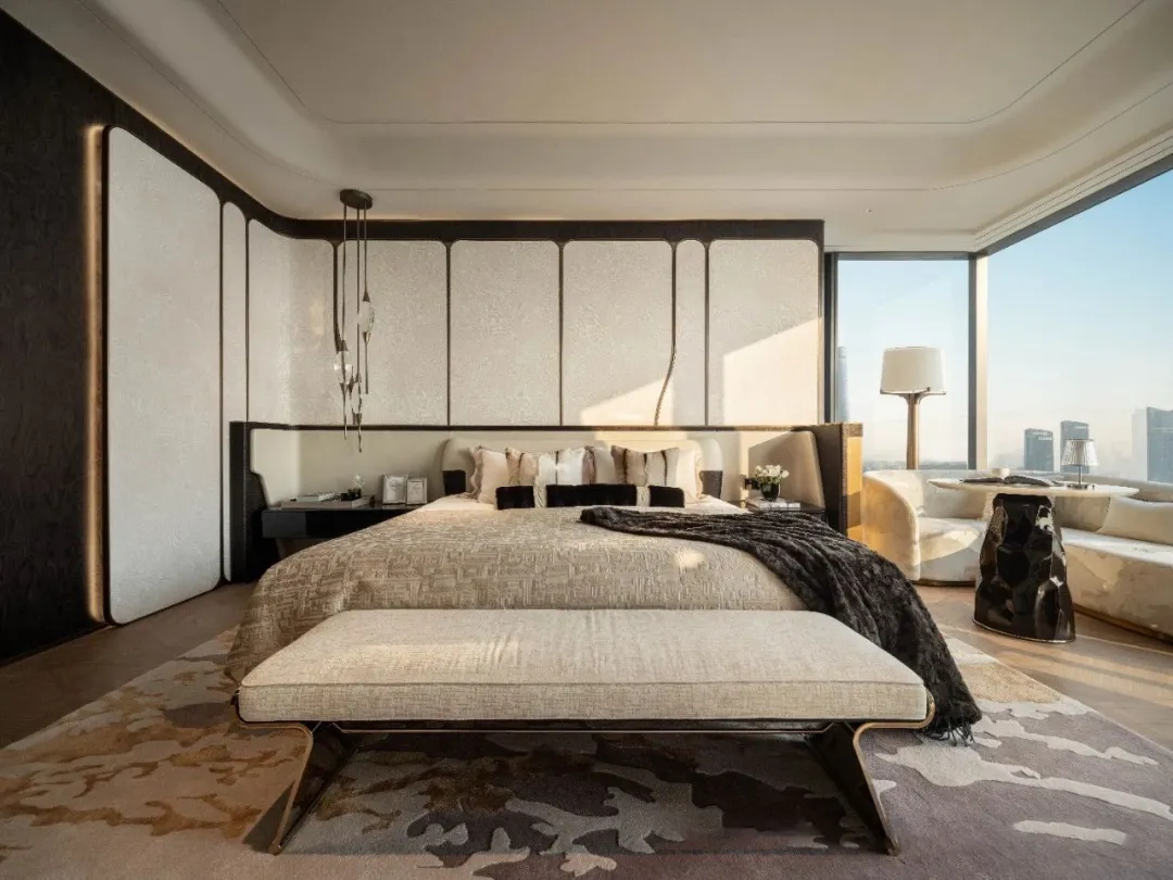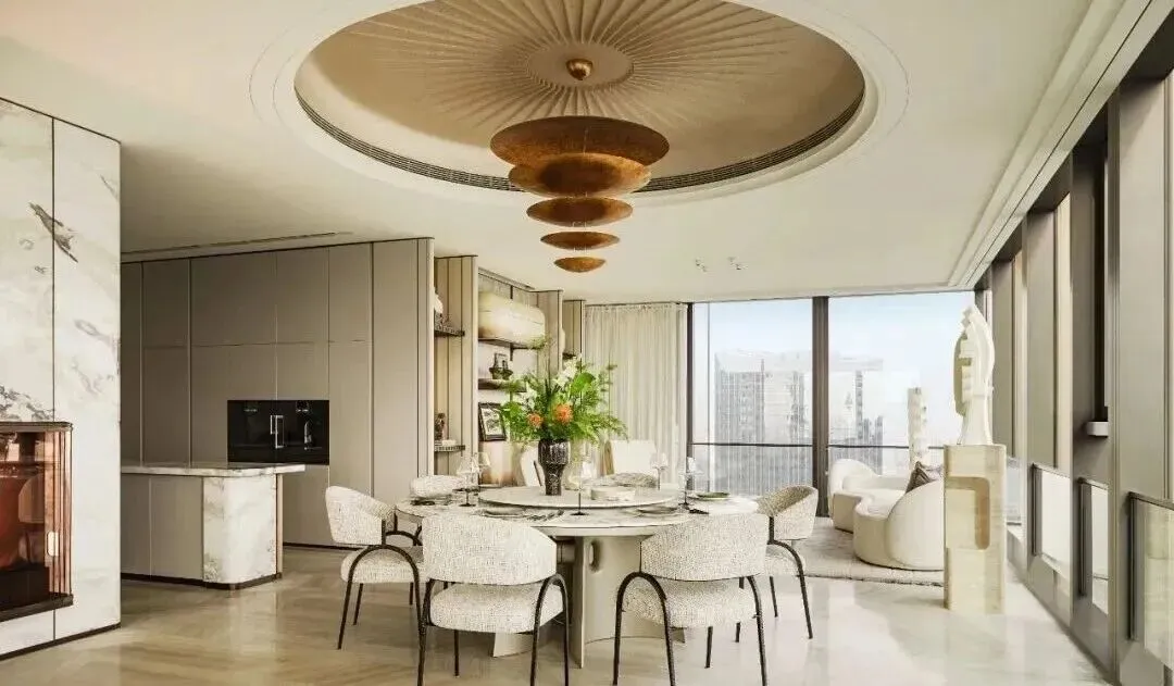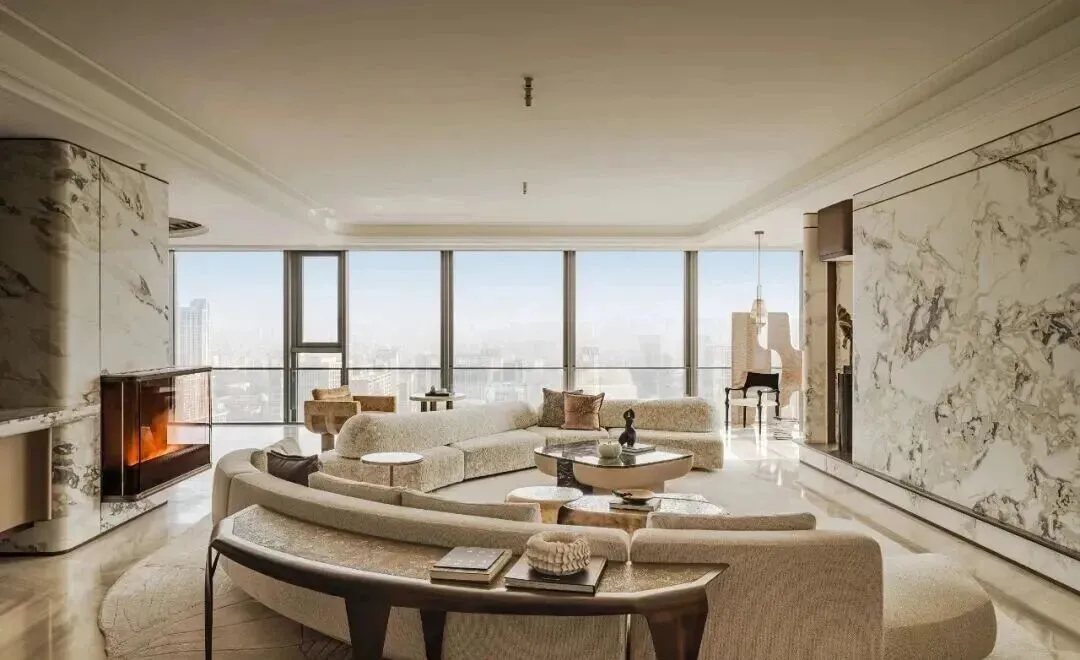 全景云幕平层,主力户型面积为155㎡、194㎡、231㎡、312㎡、412㎡、498㎡等,层高3.75米,部分高区户型可达486㎡。邀请全球殿堂级设计巨匠参与,如HWCD、CCD等国际知名设计公司,从室内空间布局、软装搭配到细节处理,均遵循“先锋、极致、境界”的设计理念。
