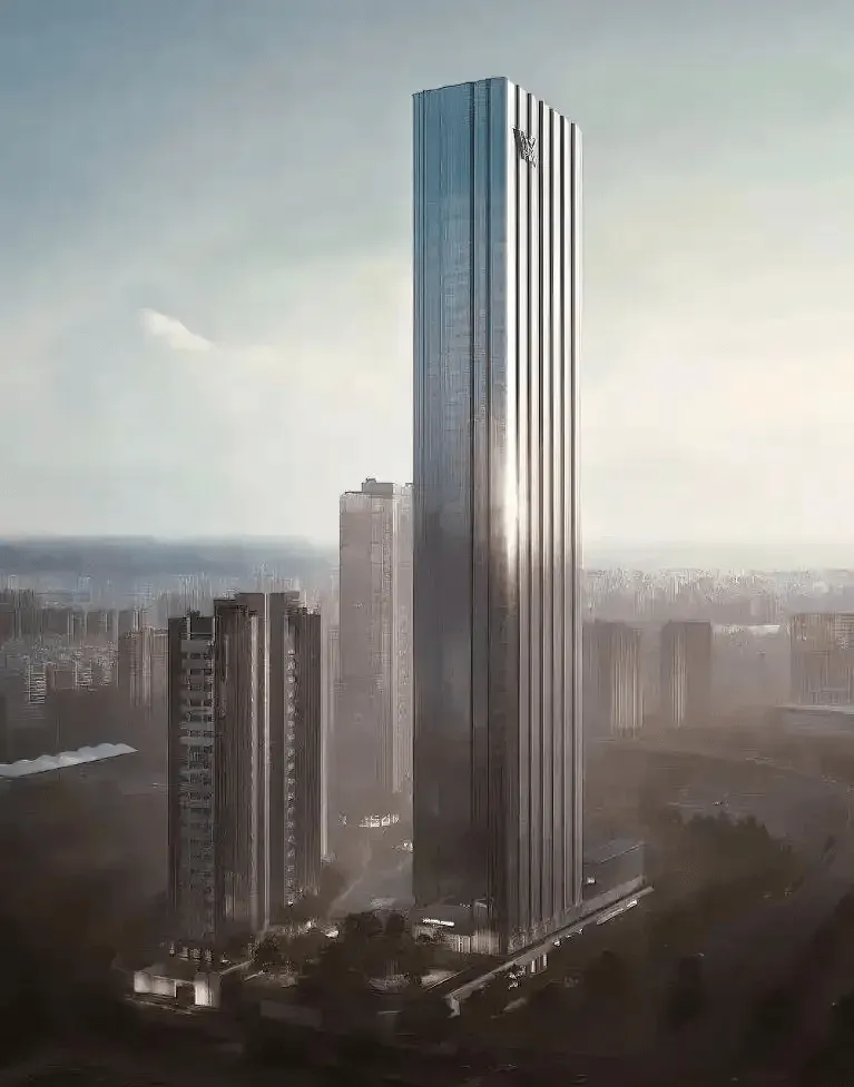 总建筑面积达121万平方米,项目包含四幢超高层写字楼、大平层住宅、柏悦酒店及空中连廊,整体呈对称布局,以“生命之树-电视塔”为轴线,营造出庄重而现代的城市天际线。