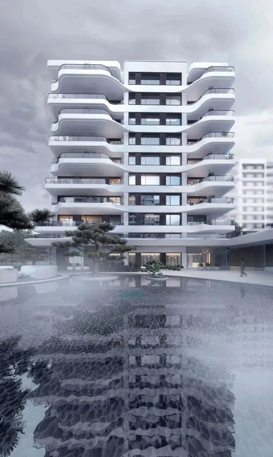 建筑外观如白瓷般纯净、轻盈、灵动