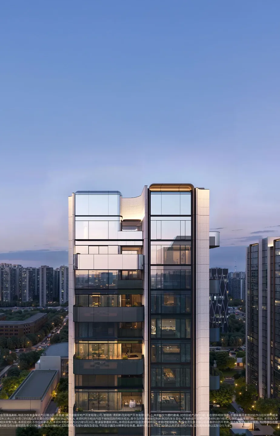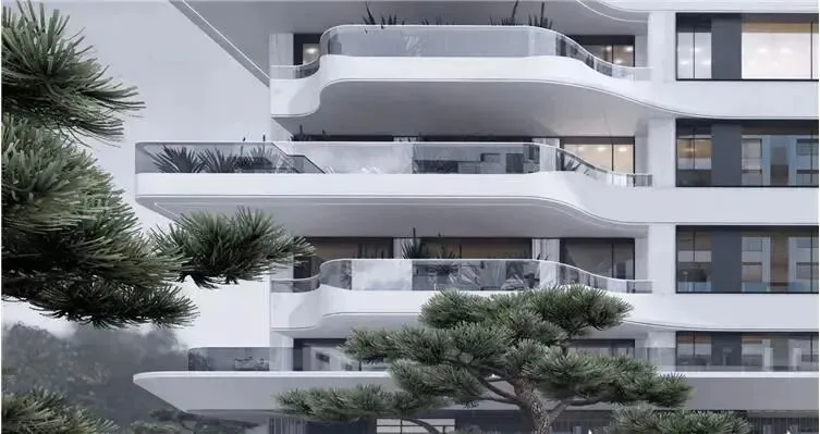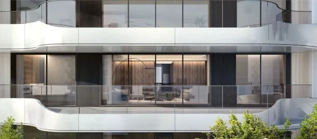 建筑设计上首创弧形陶板立面、飞檐展翼式归家入口,搭配灰玻工艺及两玻三银LOW-E充氩气玻璃,兼具隔热、隔音、降噪功能。项目注重景观营造,打造约3000㎡泛会所及下沉式庭院、架空层等公共空间,融合自然元素与艺术装置,营造静谧。