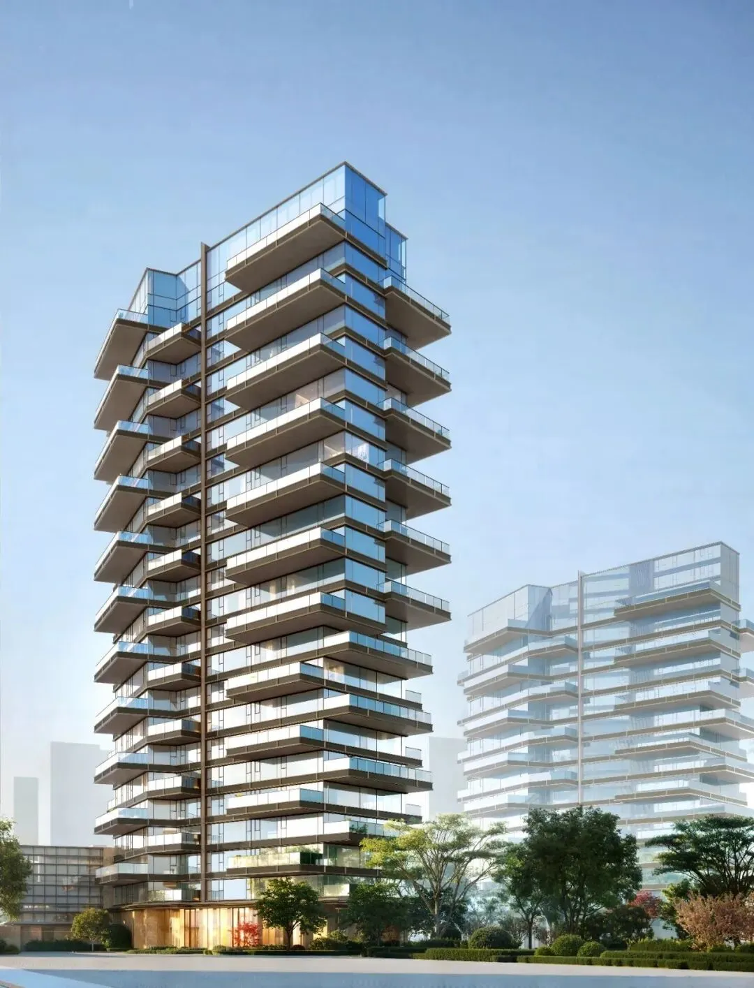空中合院及湖屿叠院设计,融合挑空露台大打造“一户一院”的公园式居住体验