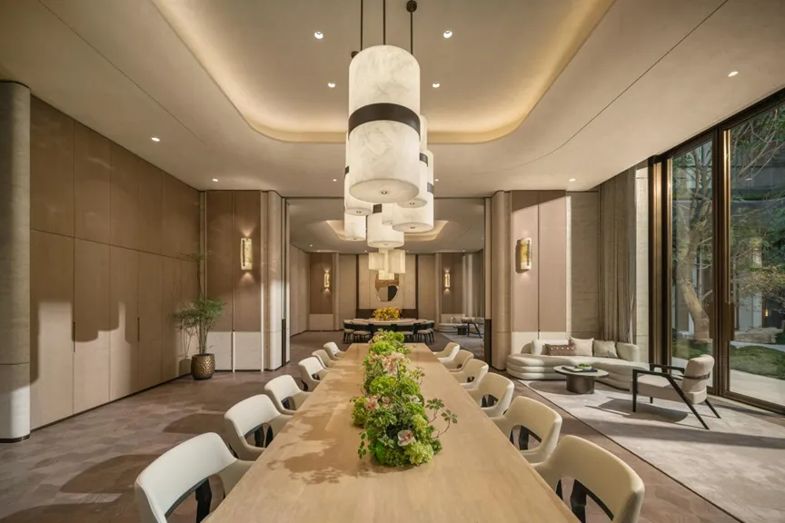 邀请国际一流设计团队(如CRTKL、GAD、DIA等)操刀,结合宋代山水画“六远法”造园理念,打造“一窗一景”的诗意空间。