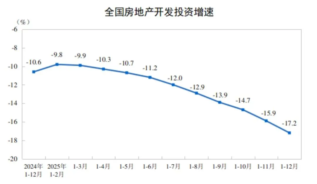 2025年,全国房地产开发投资82788亿元,比上年下降17.2%;其中,住宅投资63514亿元,下降16.3%。