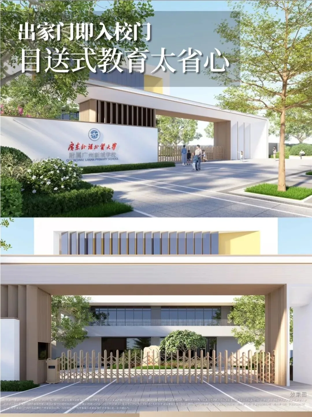 2、教育配套优质,配建一所36班的九年一贯制广外附学校,已签约并封顶,预计2026年开学。学校采用“全人教育”理念,硬件设施完善,可实现“目送式”上学,能一站式解决幼儿园到初中的12年教育,教育确定性较高。