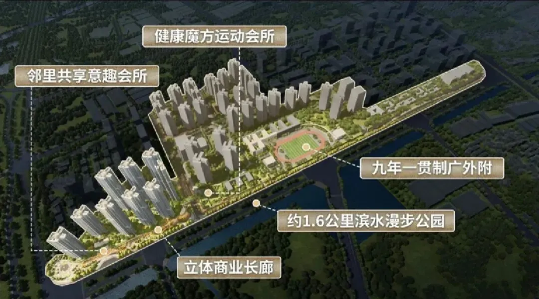 学校:配建36班九年一贯制广外附学校,已正式签约并完成主体封顶,预计2026年开学。学校采用“全人教育”理念,由广外教育集团直接管理,师资与课程体系与广外本部同步,实现“目送式接送”。