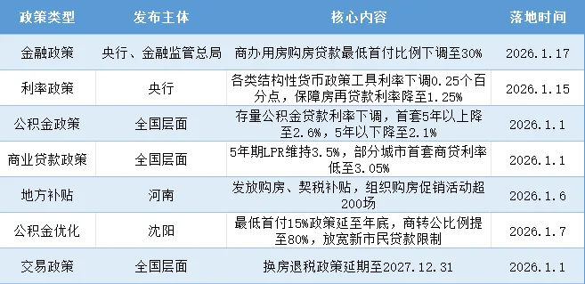 2025年末至2026年初,房地产维稳政策形成中央定调+金融发力+地方落地的立体支撑,政策重心从应急纾困转向稳需求、建模式,政策密度与力度均超市场前期预期,成为板块情绪修复的核心催化剂。
