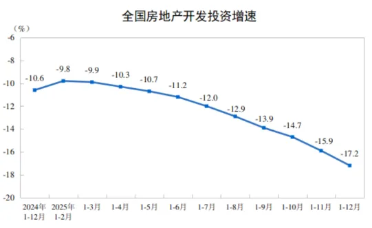 具体来看,2025年全国房地产开发投资同比下降17.2%,住宅投资下降16.3%,房屋新开工面积同比降20.4%,房企投资意愿仍处低位;