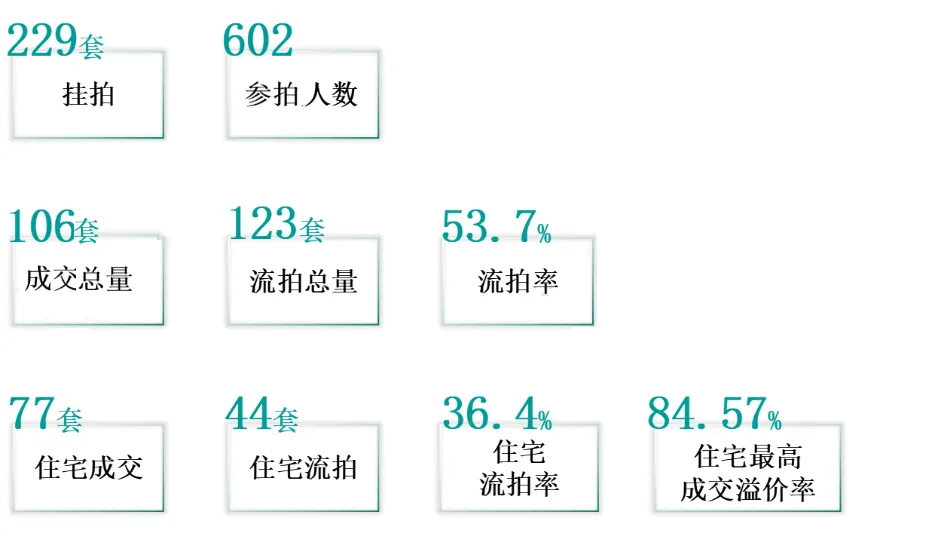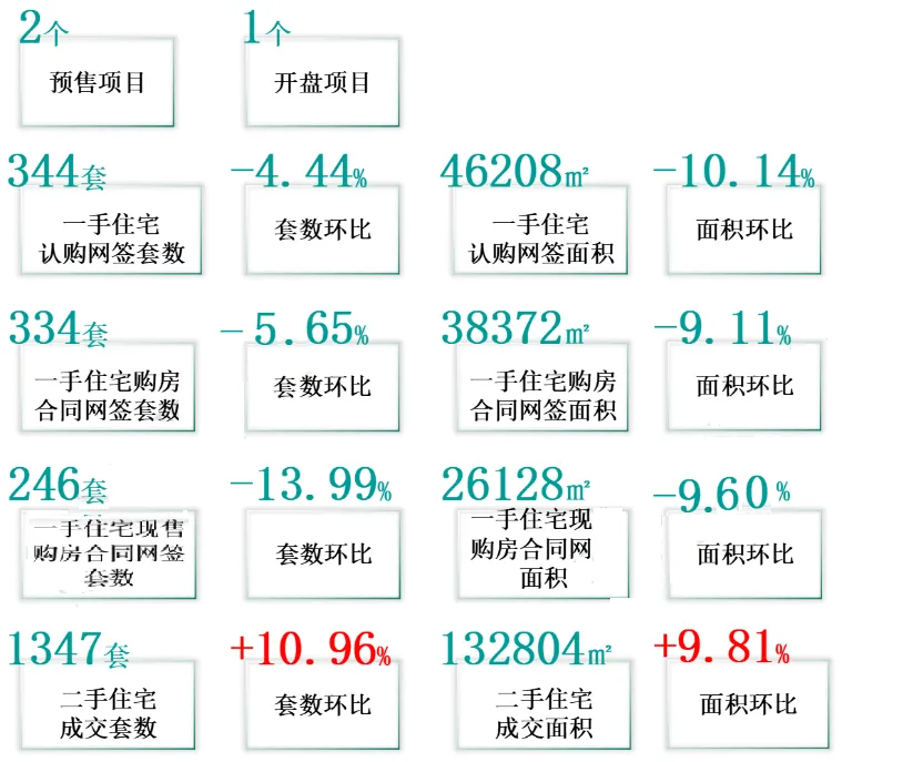 总成交量:商品房成交346套,环比↓18.97%,其中住宅成交334套,环比↑5.65%