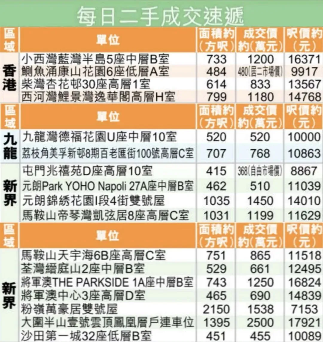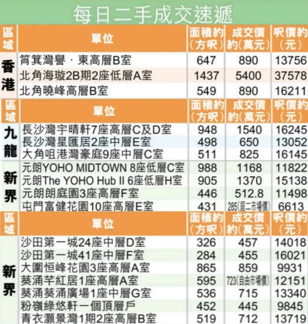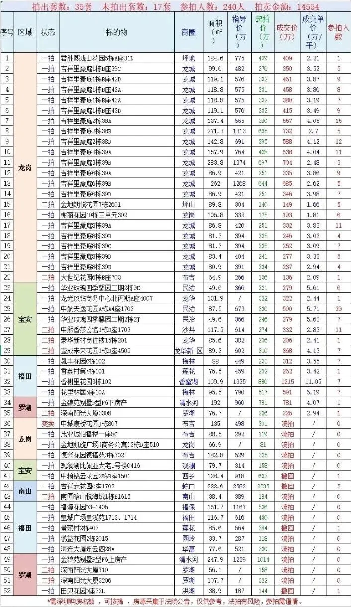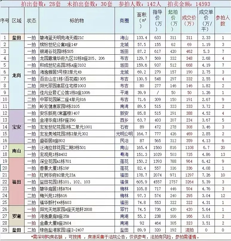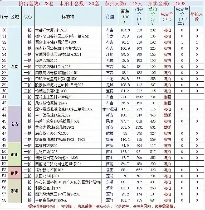 区域成交排名:①龙华区93套;②龙岗区66套;③光明区61套