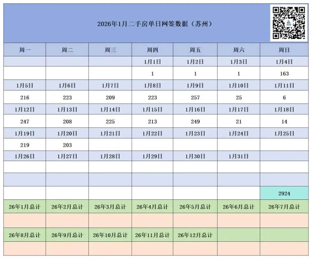 本月截至1月20日(周二),苏州六区住宅累计网签【3649套】,其中二手房累计网签【2924套】、新房累计网签【725套】。