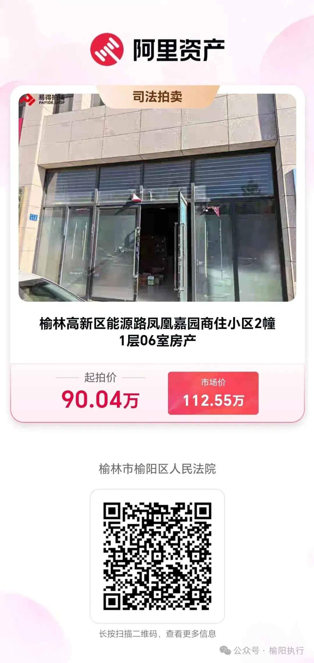 拍卖信息:榆林高新区能源路凤凰嘉园商住小区2幢1层06室房产