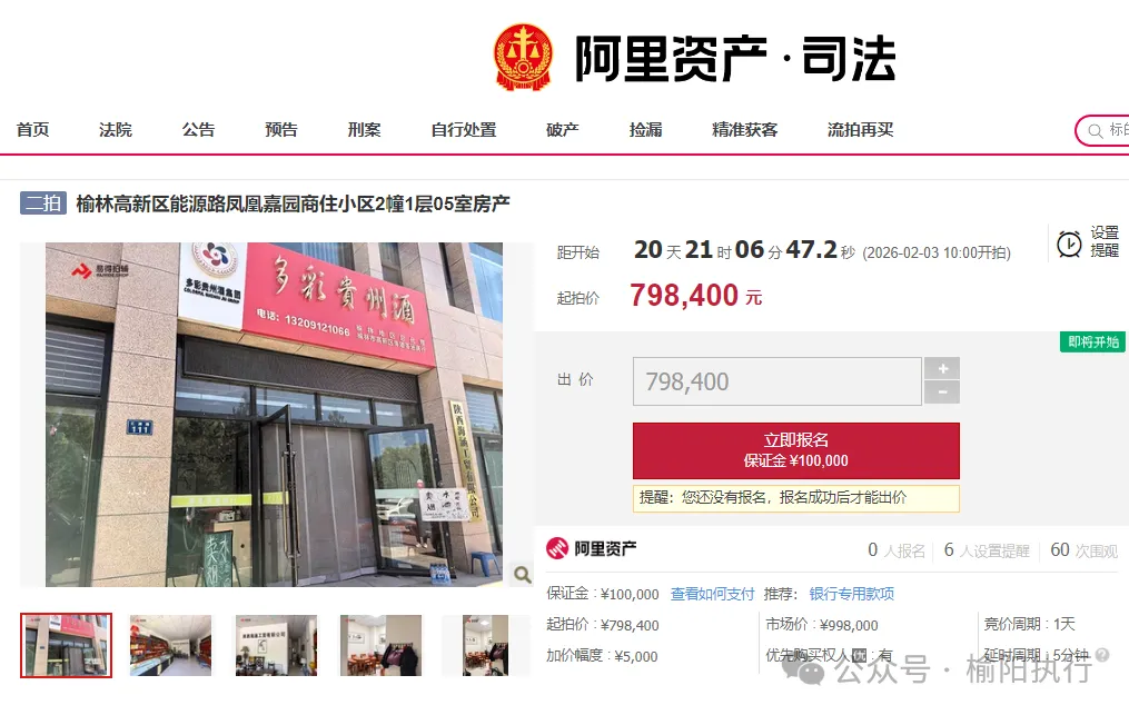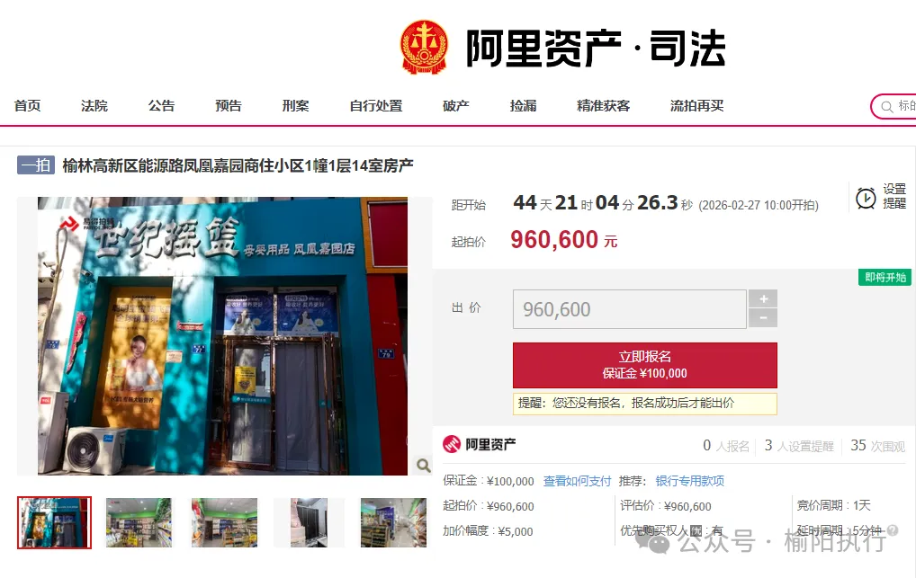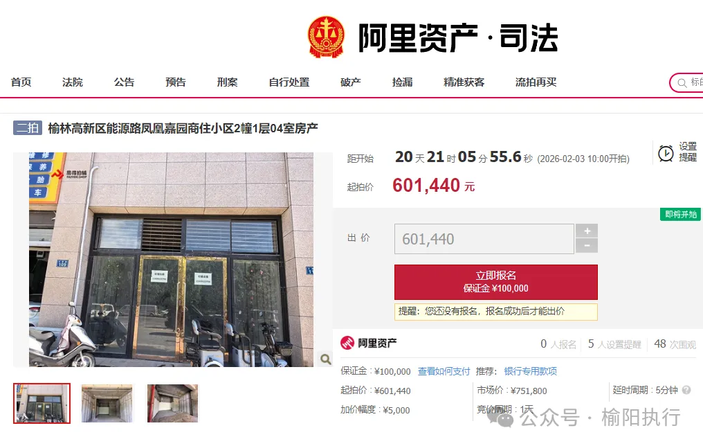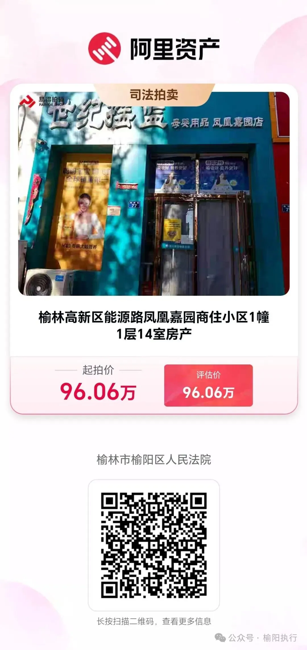 榆阳法院将于2月3日10时至4日10时和2月27日10时至28日10时,拍卖凤凰嘉园商住小区4处房产,用途均为商业服务,有意向者请详询法院。