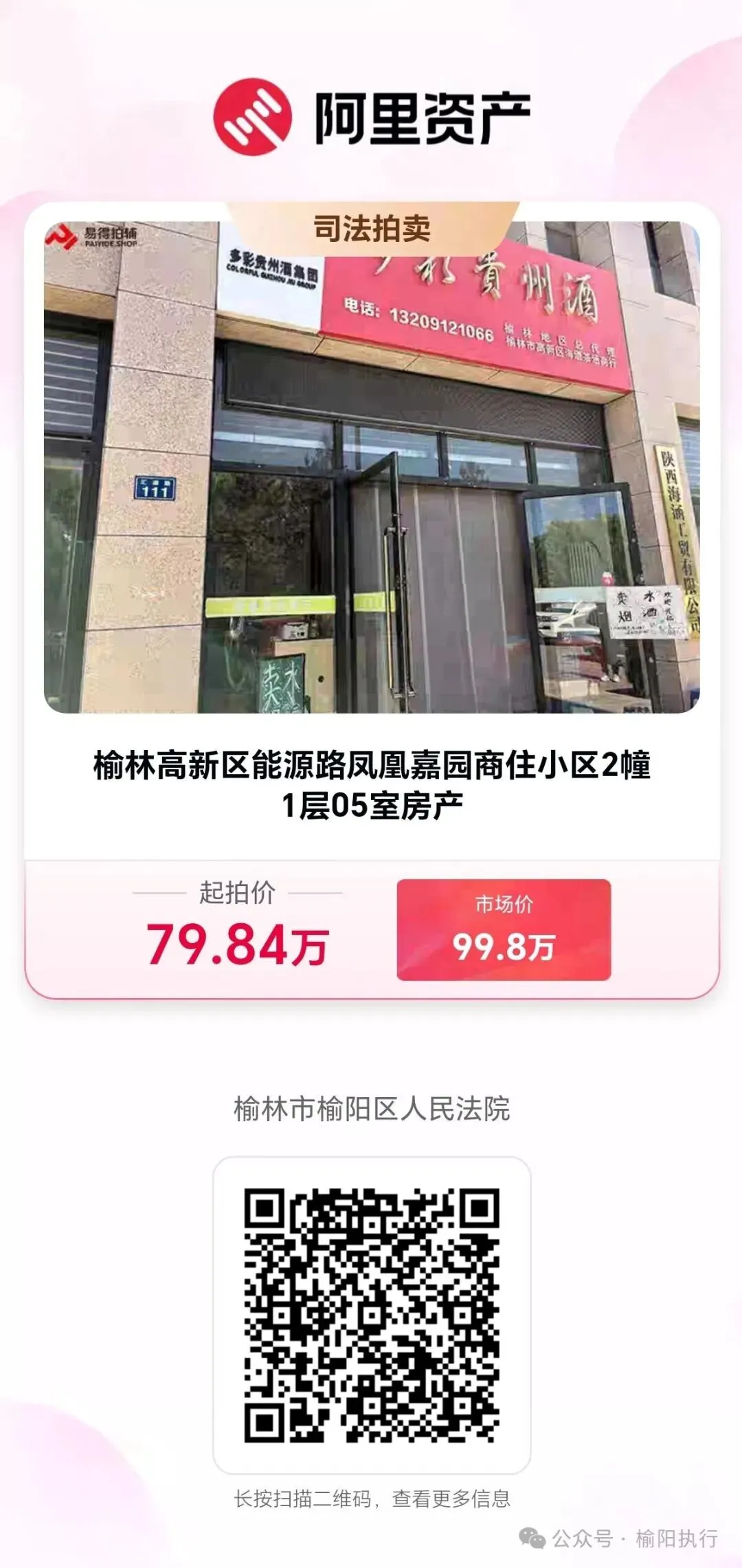 拍卖信息:榆林高新区能源路凤凰嘉园商住小区2幢1层05室房产