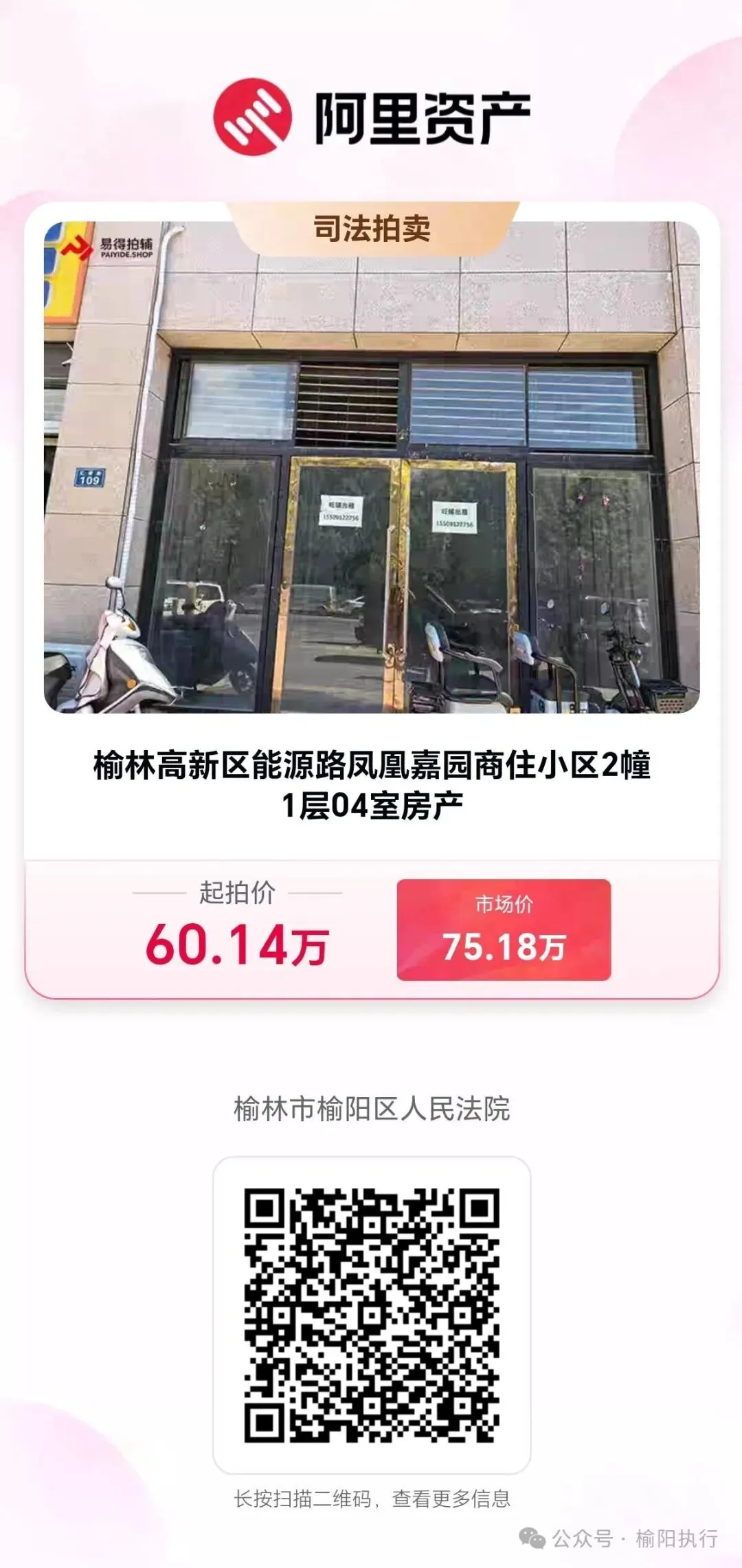 拍卖信息:榆林高新区能源路凤凰嘉园商住小区2幢1层04室房产