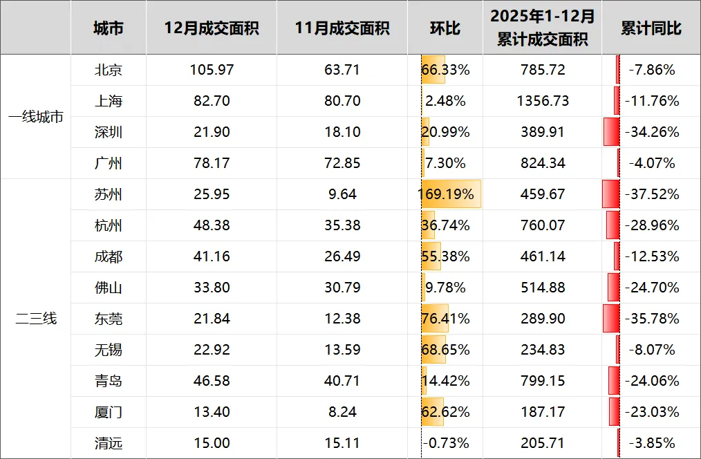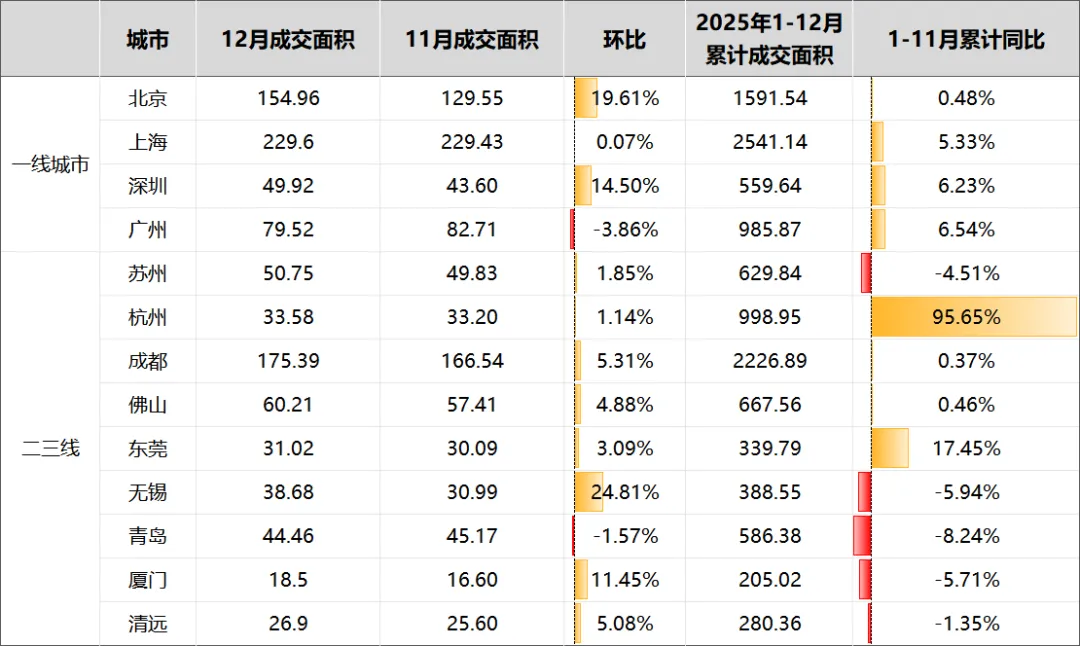 这几天梳理了下2025年12月的部门城市的数据,主要来源于国家统计局、各城市住建委,以住宅维度看: