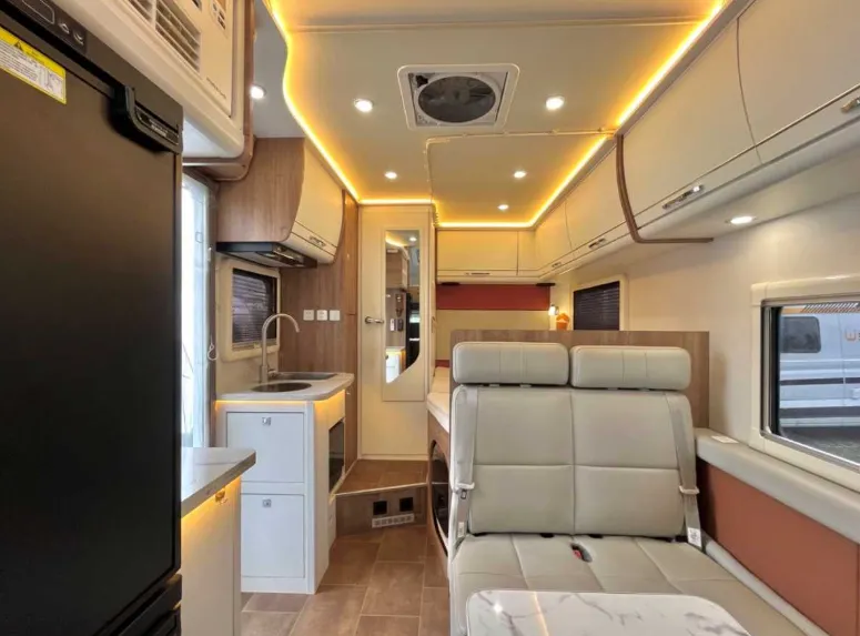 【上装配件】户外遮阳棚,户外新能源市电口,加水口,户外折叠桌板,车内氛围灯,床头阅读灯,电动脚踏板。48V直流变频空调,高品质音响,电磁炉,洗菜水池,直饮水机,不锈钢花洒,电动升降桌,烟雾报警器,英特尔 158L 双开门车载冰箱,德国伟巴斯特柴油暖风热水一体机,mini 滚筒洗衣机,抽油烟机,网络电视,伟巴斯特柴油暖风一体机,赛特福德旋转抽拉马桶,双向雨感换气扇,外推窗,不锈钢花洒,化妆镜,陶瓷洗手池,双向换气扇,毛巾置物架,