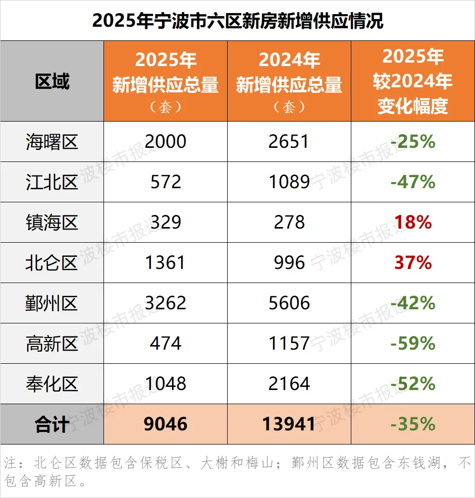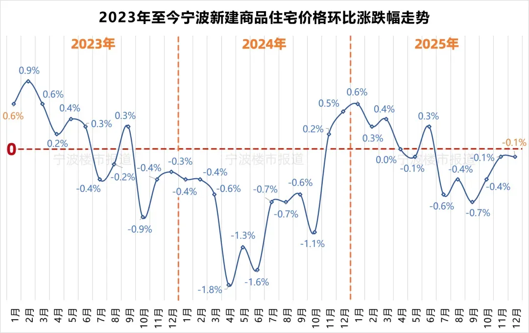 按国家统计局数据换算,2025年宁波新房房价总体仅微跌1.4%,而2024年全年整体跌幅高达7.83%。