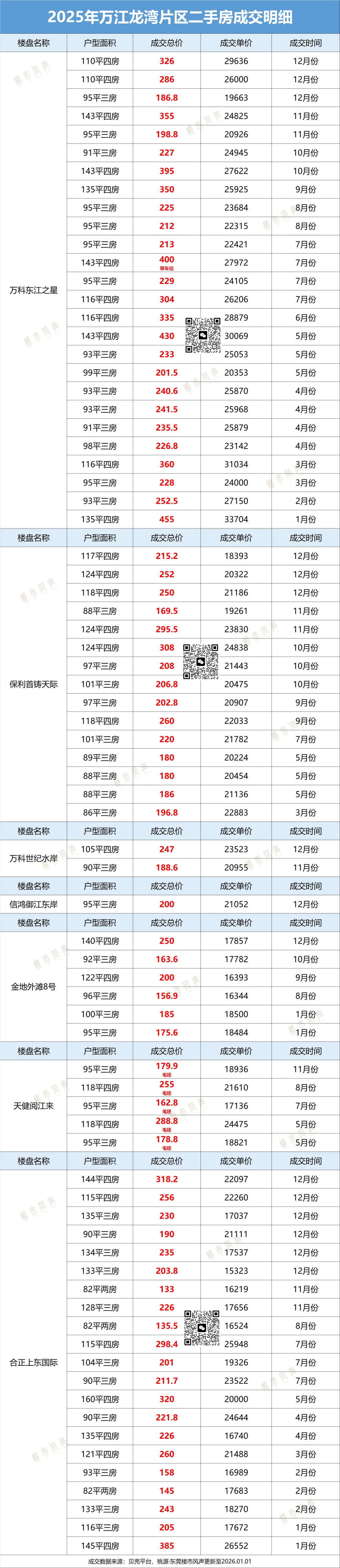 应广大粉丝要求,更新统计2025年度万江龙湾片区7大二手楼盘成交行情,供粉丝参考决策。