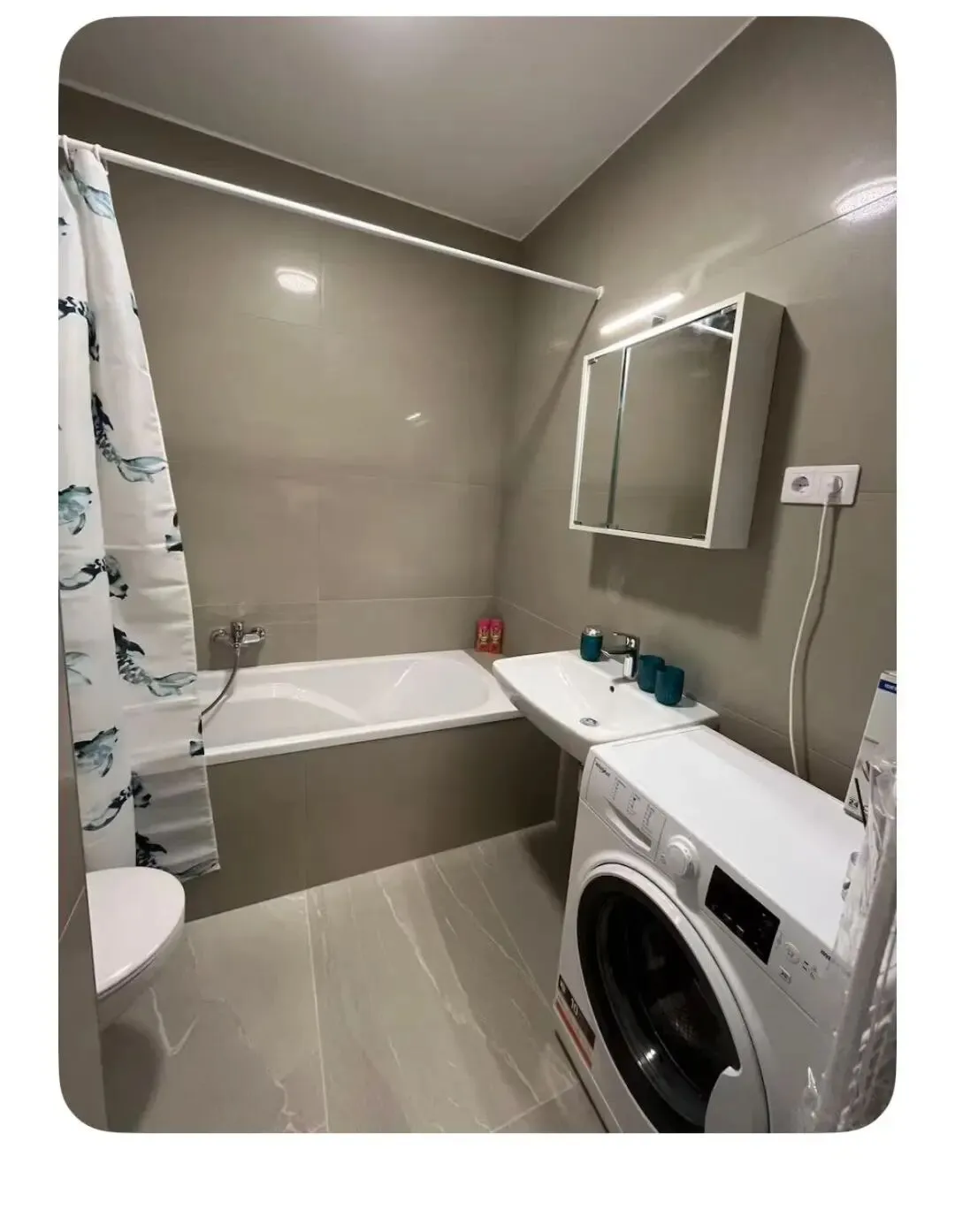 独立卫生间,浴缸 + 洗衣机齐全,实用性强