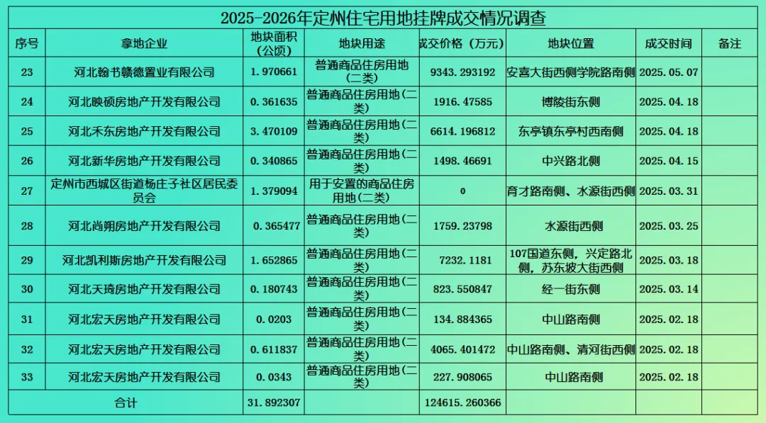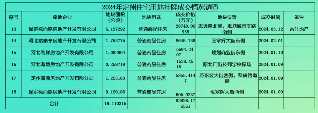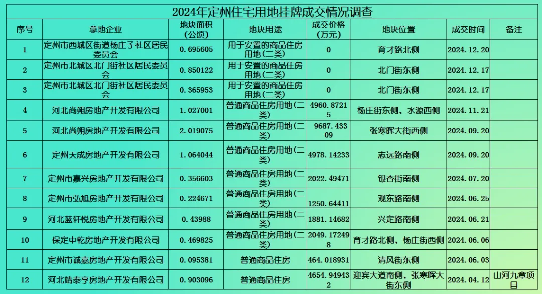 (定州市2024年住宅用地成交情况统计)