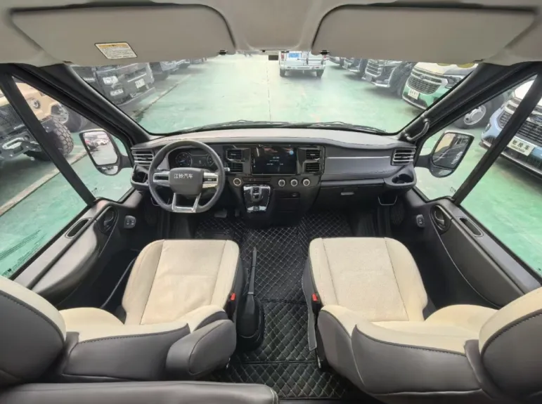 【底盘动力】江铃福顺、2.0T柴油发动机、8AT自动挡变速箱、前置后驱、多功能方向盘,一键启动,中控大联屏,倒车影像,后横床+对卡座布局。