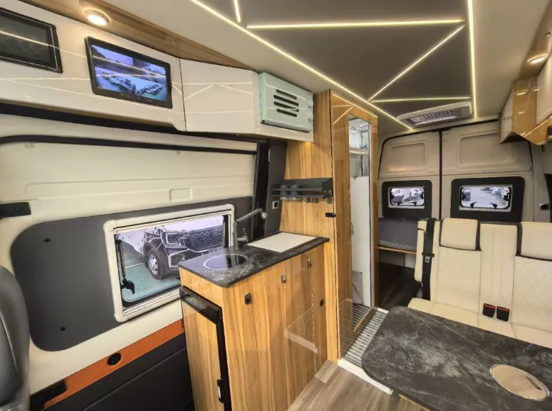 【上装配件】48V直流空调,弗罗斯特冰箱,驻车燃油暖风热水一体机,电磁炉,格兰仕微波炉,四路监控,环绕音响、抽拉卫生间,便携式马桶,淋浴花洒,卫生间换气扇、电动踏步,户外遮阳棚,户外抽拉柴油灶,防蚊纱帘,户外取电口,户外淋浴花洒,新能源市电接口。