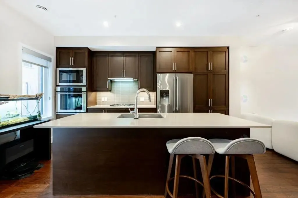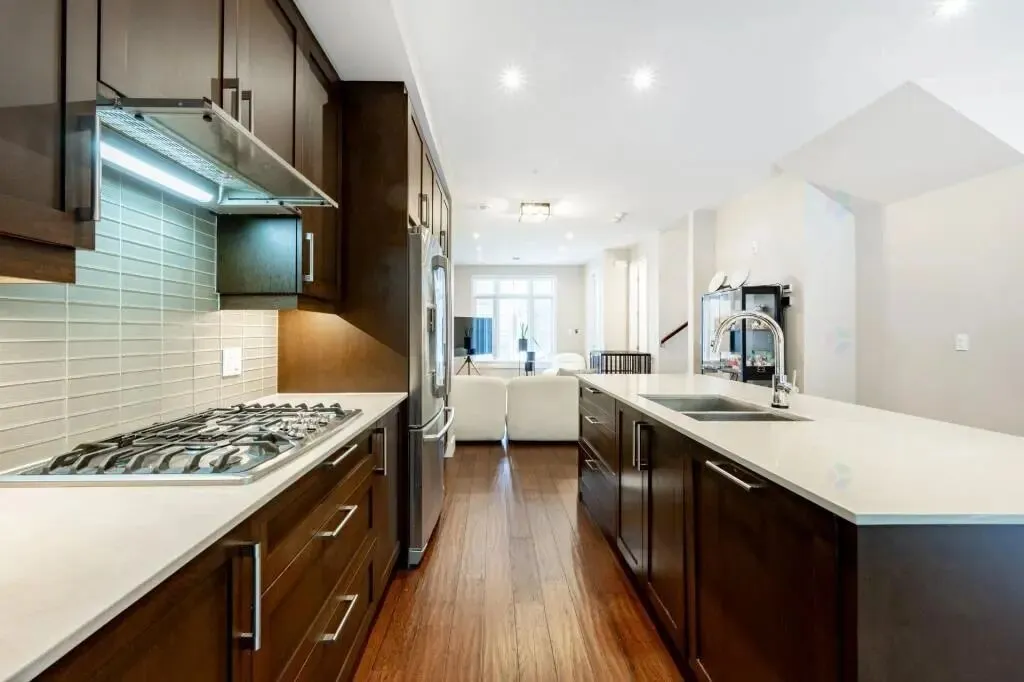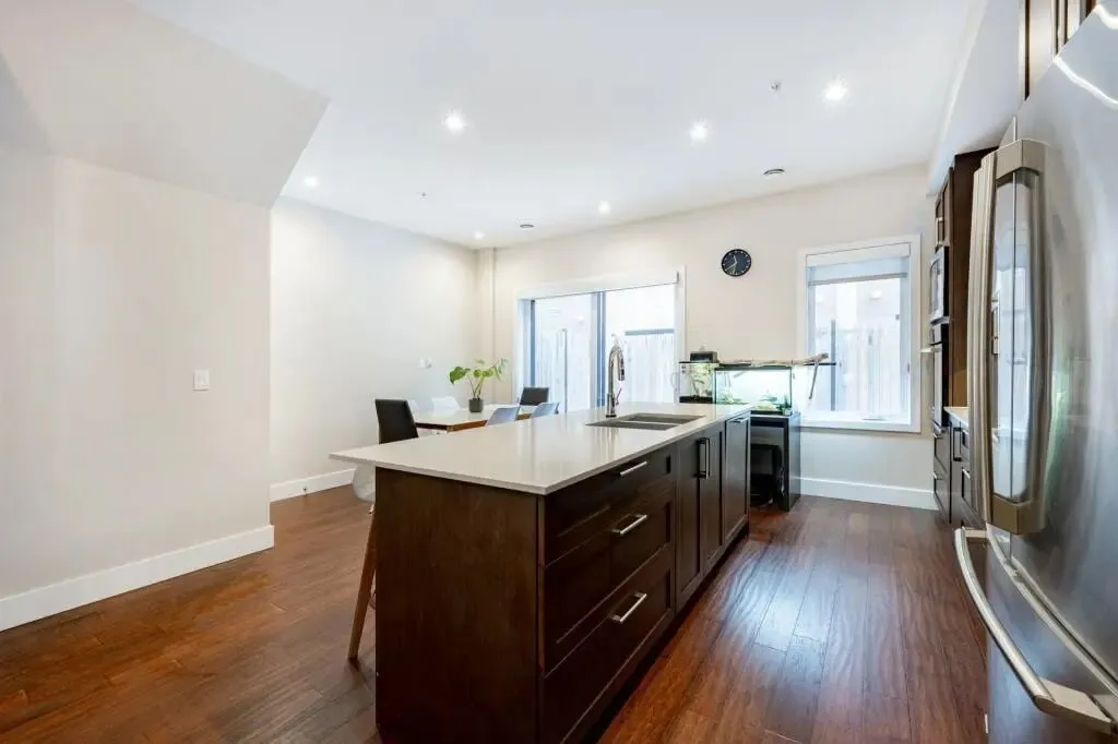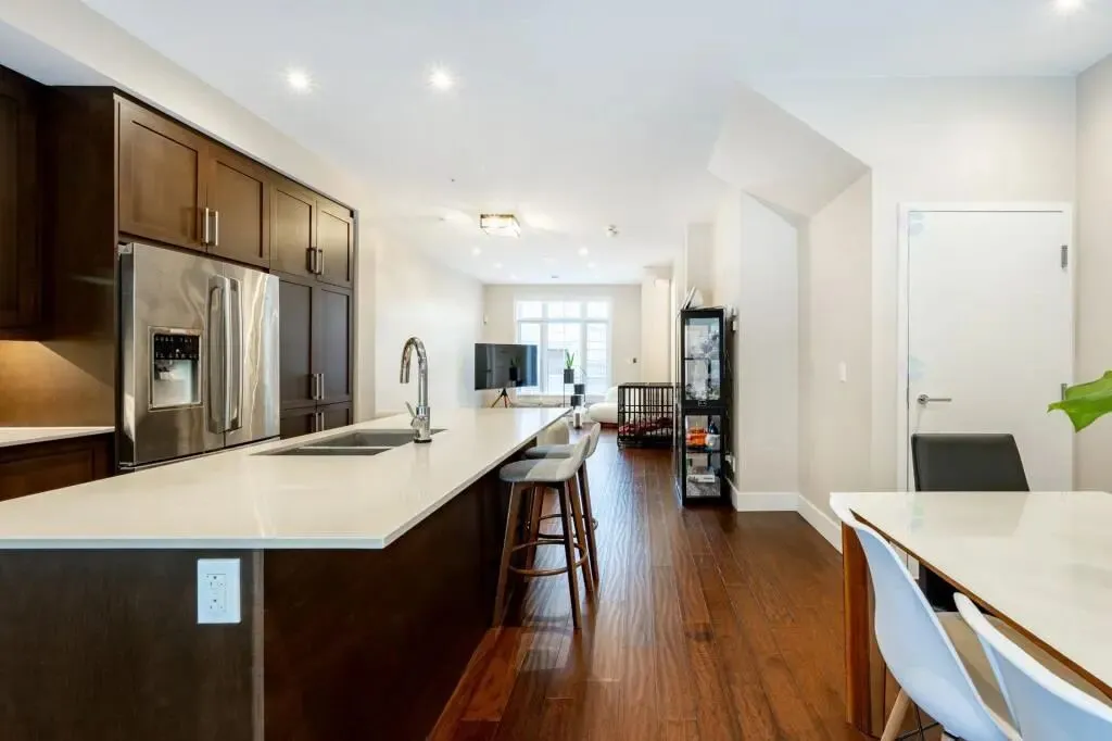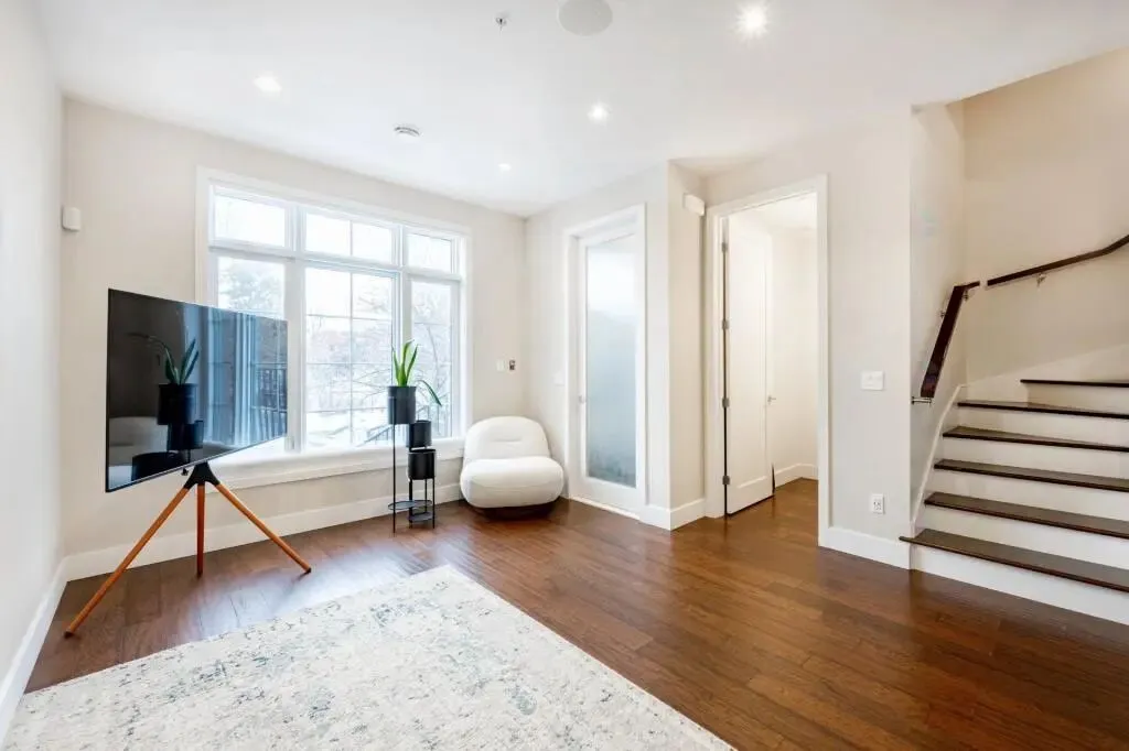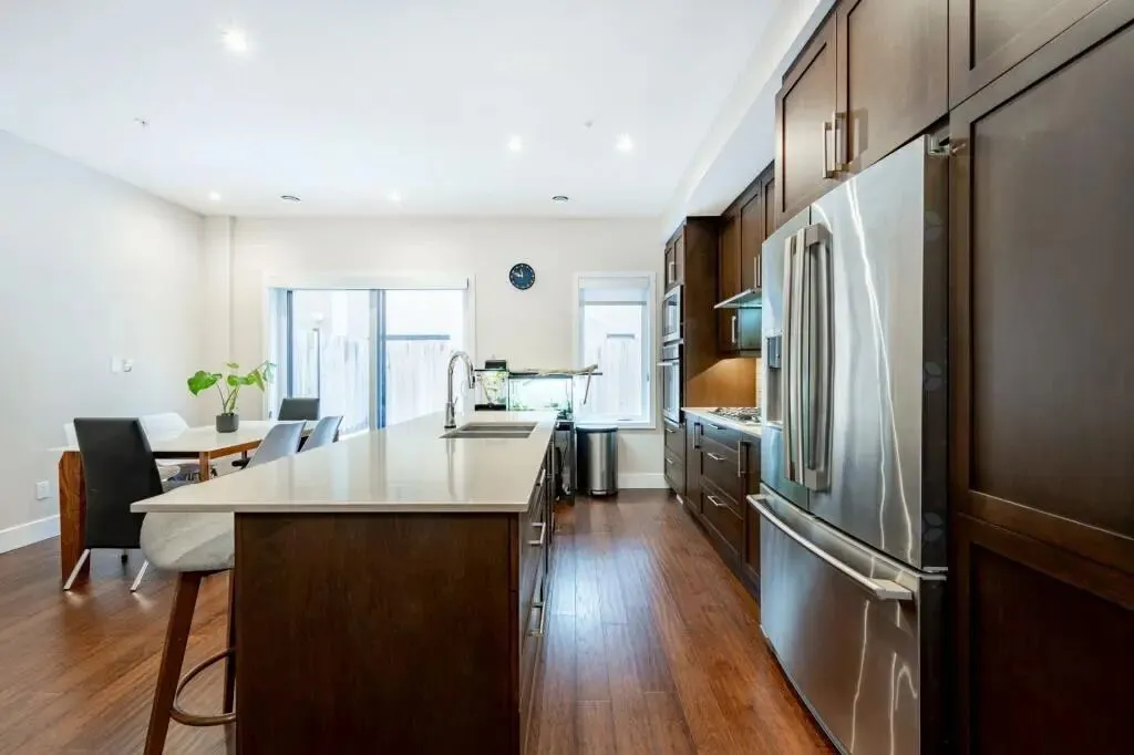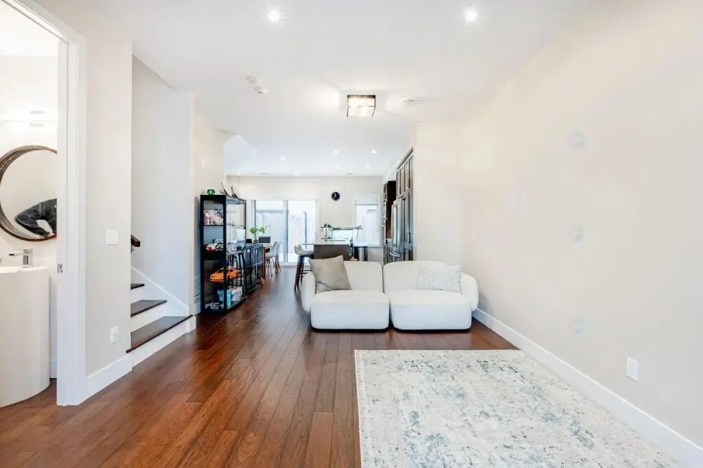 此住宅的设计完美契合现代舒适与灵活的生活理念。主层采用开放式格局,客厅、餐厅与厨房融为一体,视野开阔通透。大幅窗户确保全屋阳光充沛,采光极佳。厨房配套齐全,布局高效,与用餐区无缝衔接,便于备餐与家庭互动。
