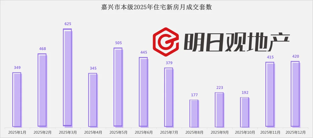 承接2024年系列政策的后续效应,2025年一季度新房市场相对活跃,成交走势较好,3月出现了全年高点(625套),而二三季度成交锐减,到了四季度才有小幅回升。