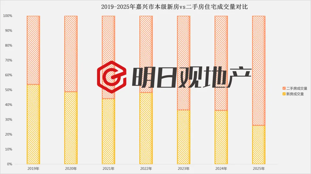 2024年,市本级二手房成交量占年度总成交量63.75%,到了2025年,这一比值来到了73.85%,从四六开,到三七开,二手房成交量占比的不断升高,实质上是楼市进入存量时代的必然结果。
